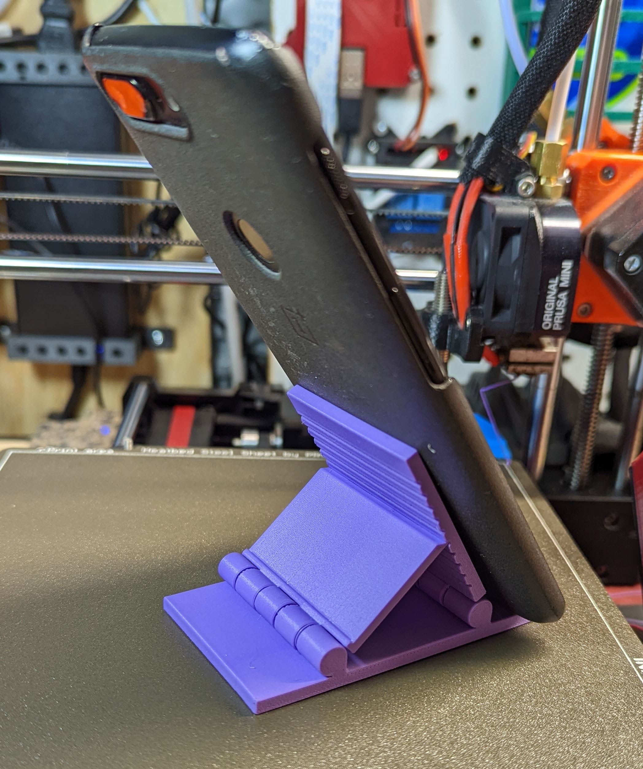 Der minimalistische, ultraportable faltbare Telefonhalter ist ein kleiner, faltbarer Telefonhalter, der problemlos in Ihre Laptoptasche oder jede Tasche passt. Es lässt sich flach zusammenfalten und hält die meisten Mobiltelefone in einem geeigneten Winkel. Es sind sowohl die Größen 50 mm als auch 80 mm erhältlich. Der 50-mm-Halter ist ultraportabel und hält jedes Telefon bei Bedarf aufrecht, während der 80-mm-Halter bei Bedarf auf die Breite der meisten Mobiltelefone passt. Es kann ein Telefon vertikal halten und kippt bei Berührungen des Bildschirms nicht um, obwohl es für den Zugriff auf den USB-Anschluss am besten horizontal positioniert ist.
