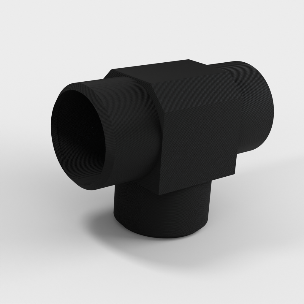 Dabei handelt es sich um einen T-förmigen Adapter, mit dem Sie zwei Staubsaugerschläuche an einen Staubsauger anschließen können.