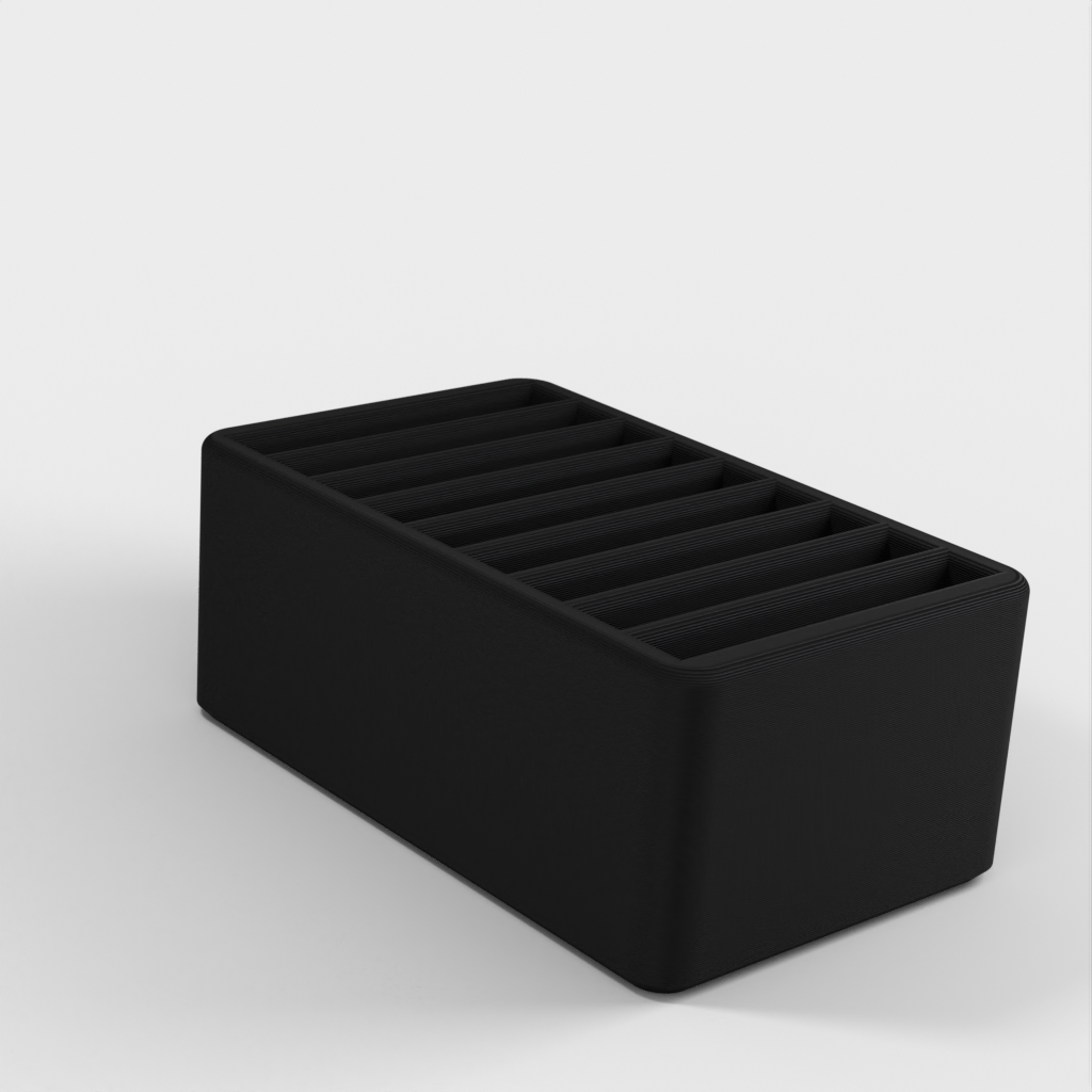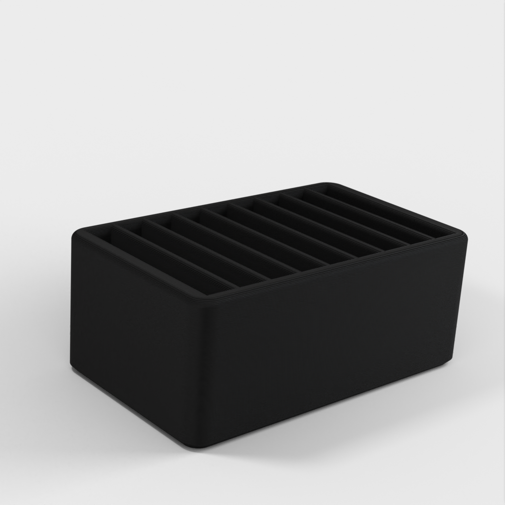 Dies ist ein SD-Kartenhalter, der einfach und schnell zu drucken ist. Es bietet Platz für 9 Karten und hat die Abmessungen 48,5 mm (Länge), 30 mm (Breite) und 20 mm (Höhe). Perfekt für eine organisierte Aufbewahrung Ihrer SD-Karten.