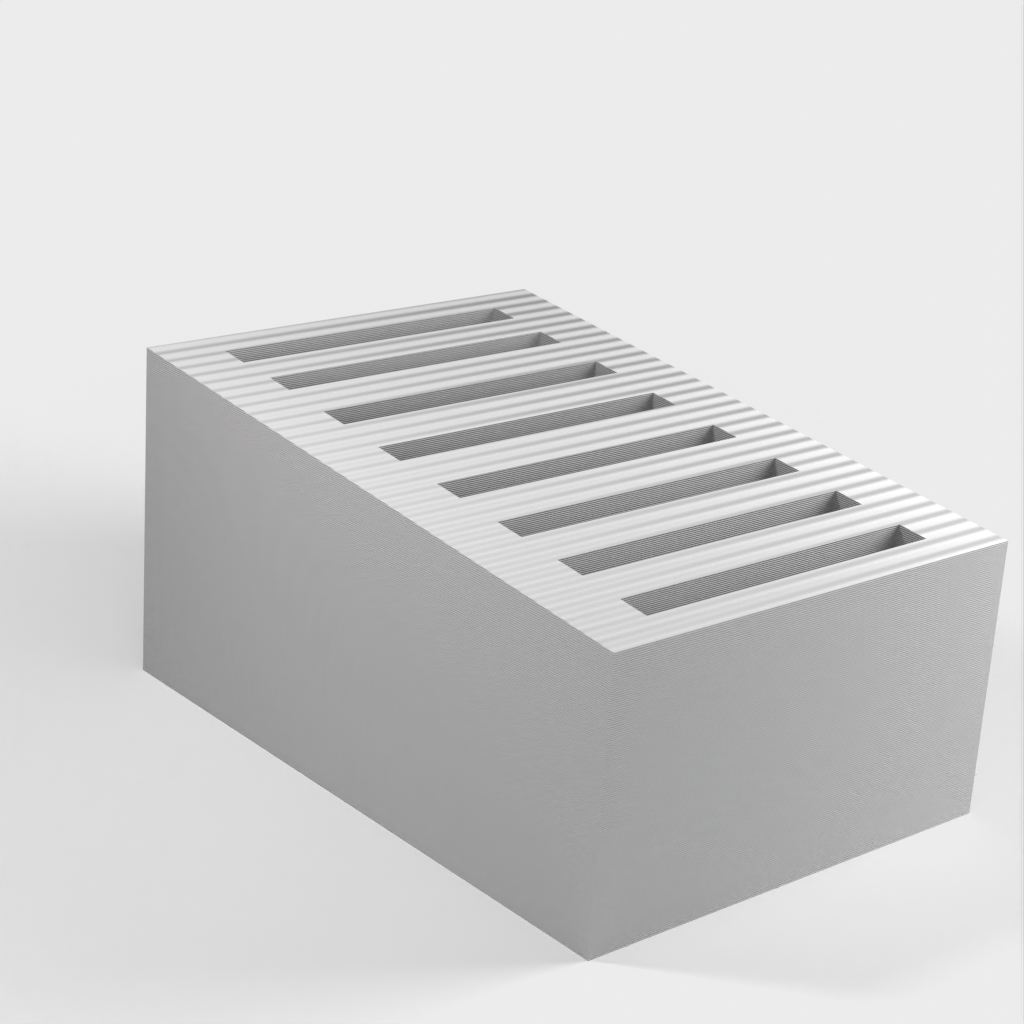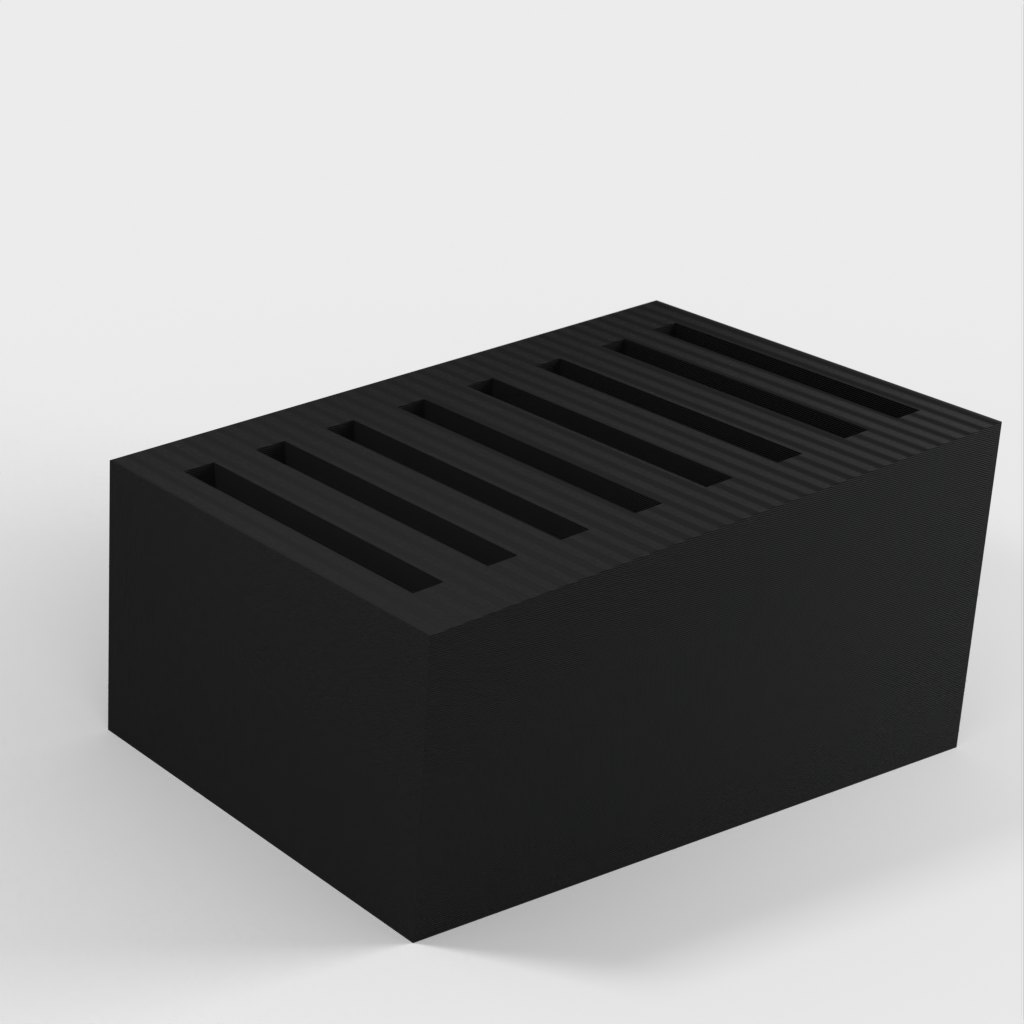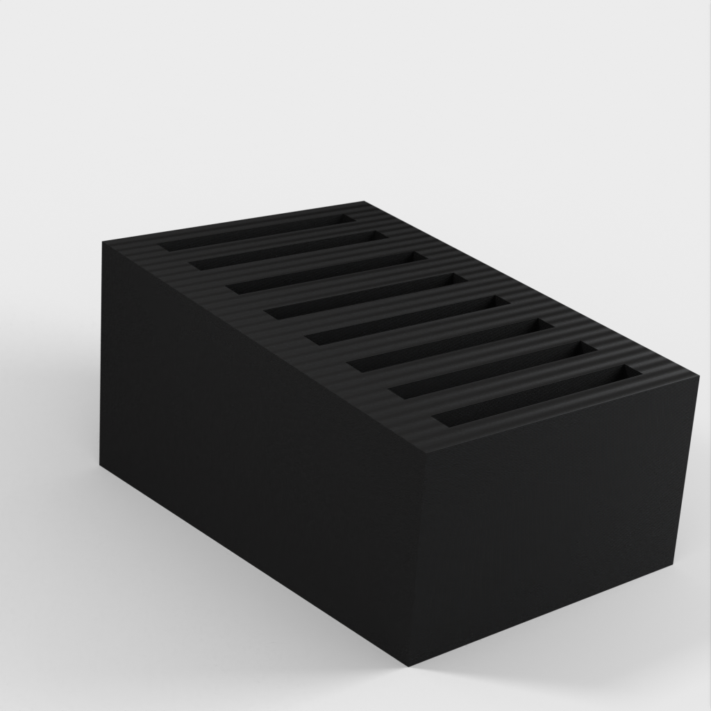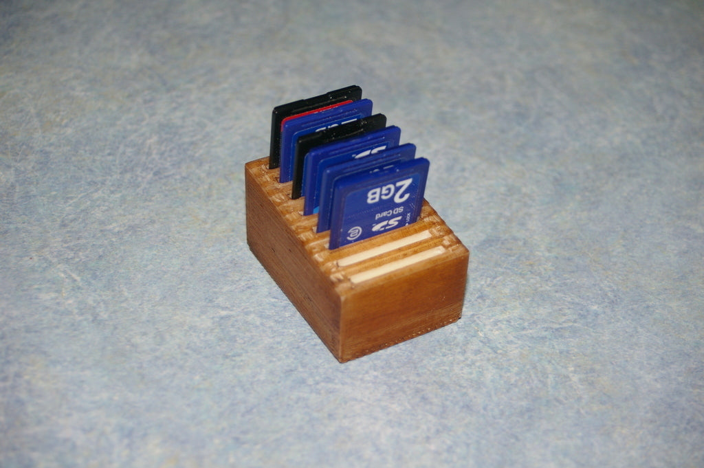 Dies ist ein einfacher SD-Kartenhalter, der bis zu 8 SD-Karten aufnehmen kann. Die Schlitze sind etwas fester, damit die Karten nicht herausfallen, wenn Sie den Halter umstoßen. Darüber hinaus ist der SD-Kartenhalter sehr schlicht gestaltet.