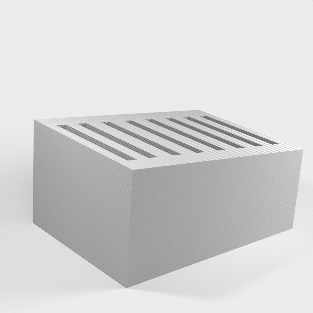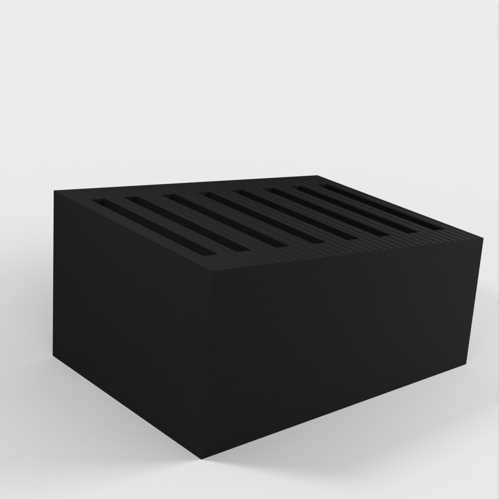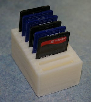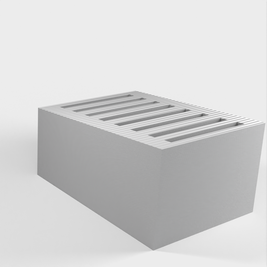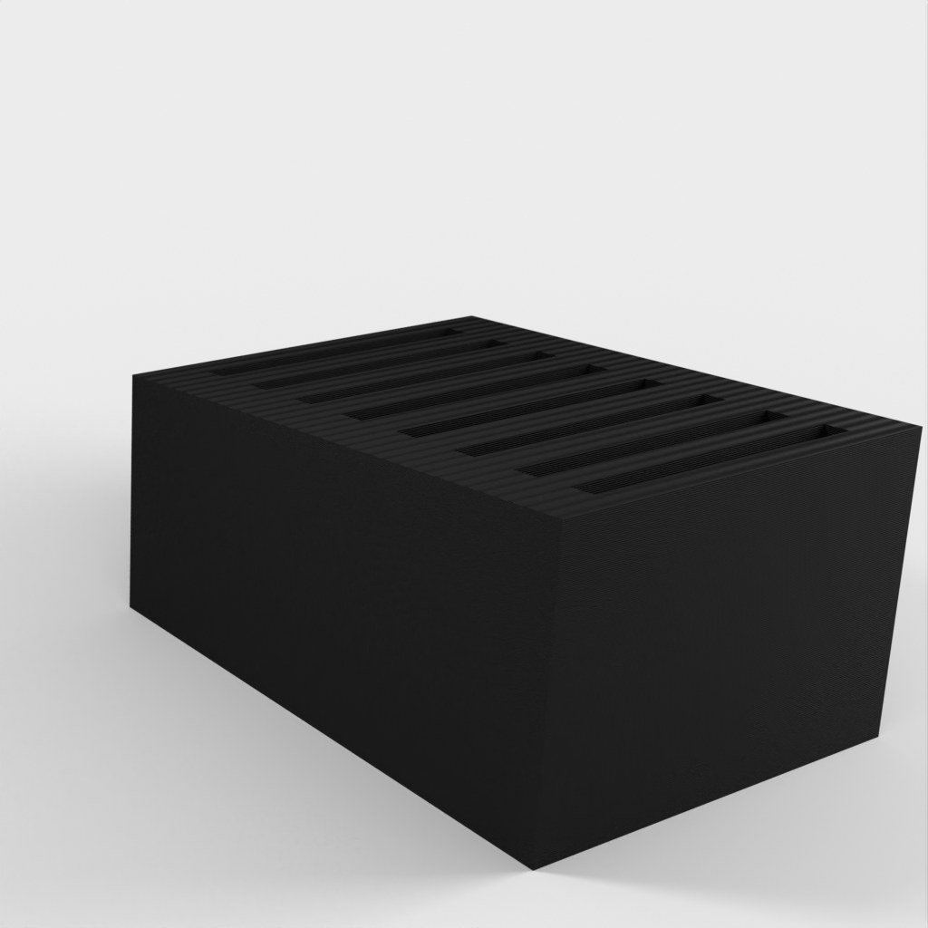 Dies ist ein einfacher SD-Kartenhalter, der bis zu 8 SD-Karten aufnehmen kann. Die Schlitze sind etwas fester, damit die Karten nicht herausfallen, wenn Sie den Halter umstoßen. Darüber hinaus ist der SD-Kartenhalter sehr schlicht gestaltet.