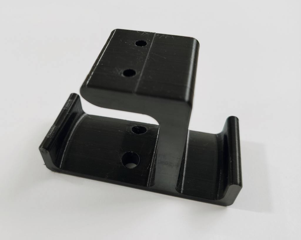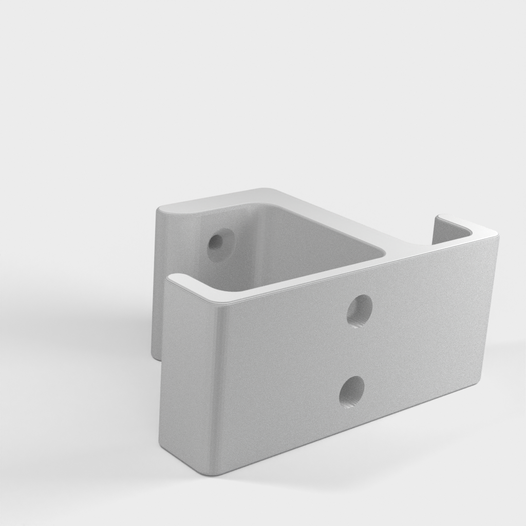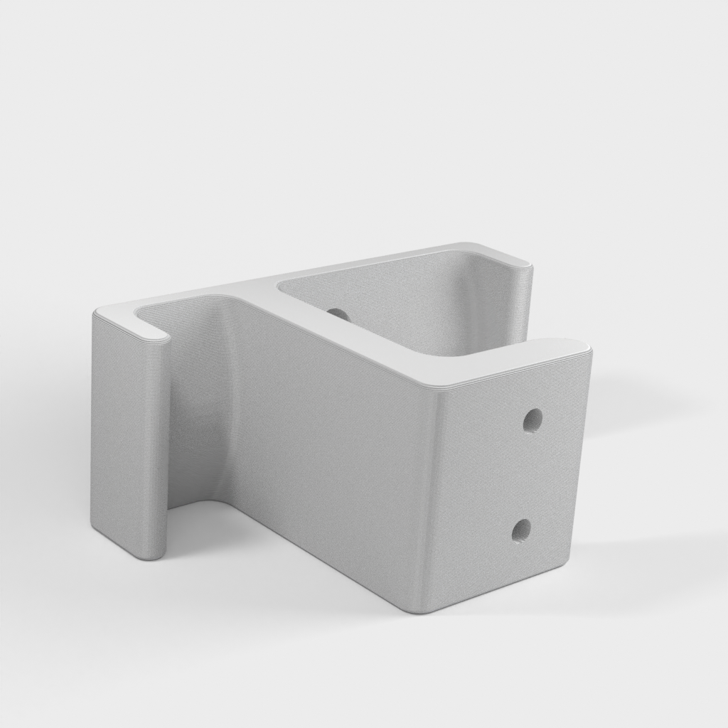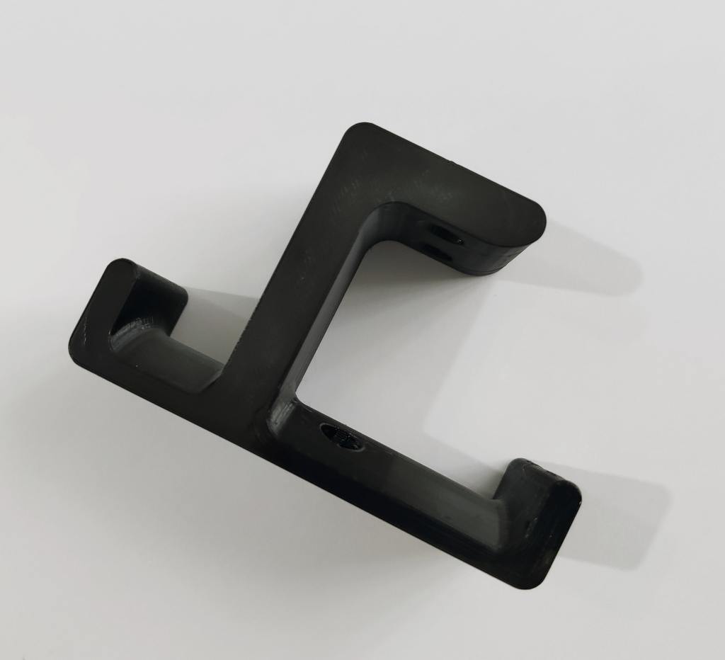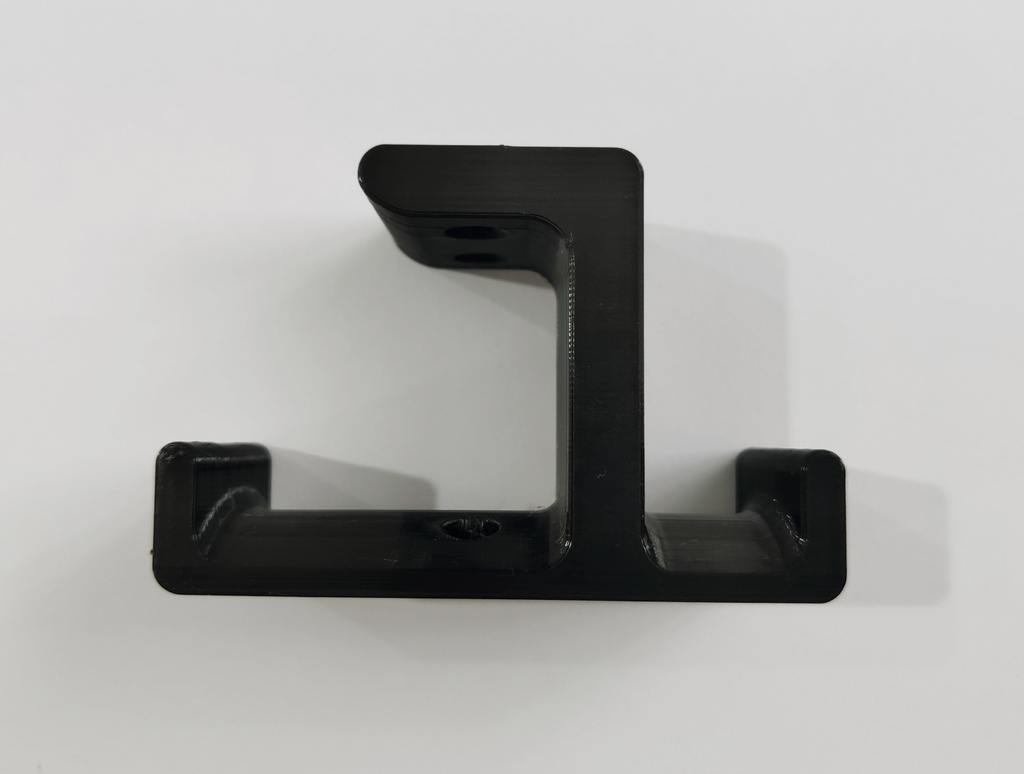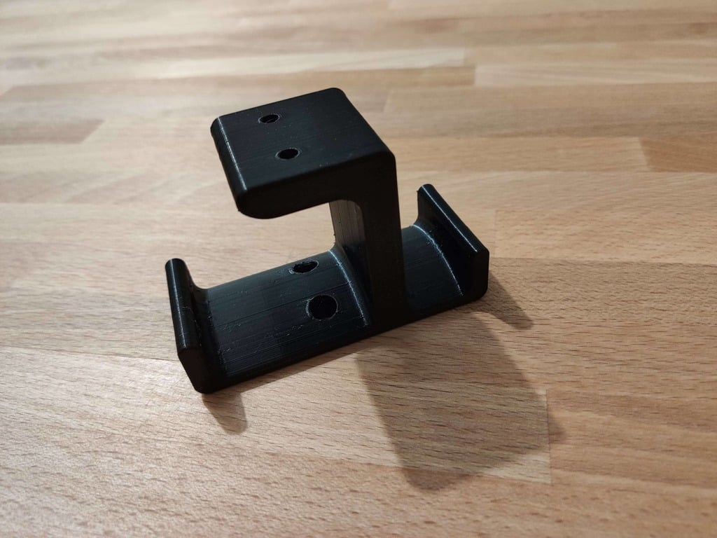 Dies ist ein Halter, den ich für ein Headset entworfen habe. Sie können diesen Halter unter den Tisch schrauben oder kleben. Der Halter lässt sich über zwei Haken aufklappen, einen für das Headset und einen für das Kabel. Die Halterung ist sehr stabil, sodass Sie sich um Ihre Kopfhörer keine Sorgen machen müssen. Um diesen Halter unter dem Tisch zu befestigen, verwenden Sie einen M4-Holzschraubendreher.