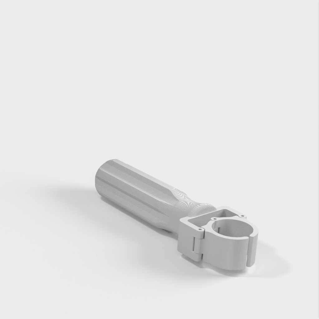 Für die Verwendung mit Standard-Besenstielen aus Holz (25 mm) und Kunststoff-Besenstielen mit kleinerem Durchmesser (21 mm) werden zwei Clipgrößen mitgeliefert.