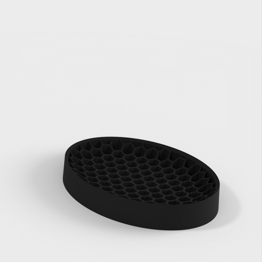 Abtropfseifenhalter für Badewanne, Dusche und Tisch. Dieser intelligente Seifenhalter ist mit Abflusssäulen ausgestattet, die das Abfließen des Wassers erleichtern, sodass Ihre Seife trocken bleibt und die Ansammlung von Wasser sowohl in Ihrer Seife als auch auf der Oberfläche verhindert wird. Die aktualisierte Version hat ein flacheres Design, weniger Gewicht und kleinere Sechskantlöcher für mehr Funktionalität. Dieser Seifenhalter ist ideal, um Ihre Seife überall sauber und trocken zu halten.