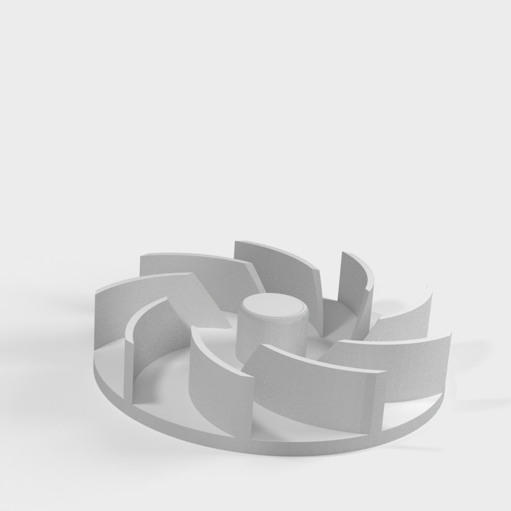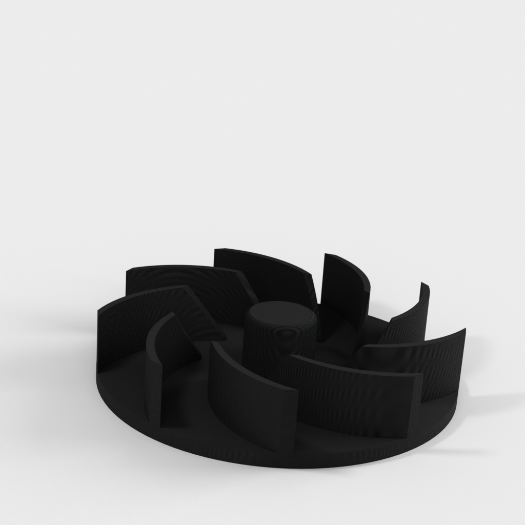 Ersatzrotor für Ryobi RBL1802 Laubbläser. Das zweiteilige Design erleichtert den Austausch eines defekten Rotors und stellt sicher, dass Ihr Werkzeug wieder optimal funktioniert. Zur Montage auf der Motorwelle empfiehlt es sich, etwas Teflonband und eine Faserscheibe zu verwenden, um den richtigen Abstand zum Motor zu gewährleisten und einen festen Sitz zu gewährleisten.