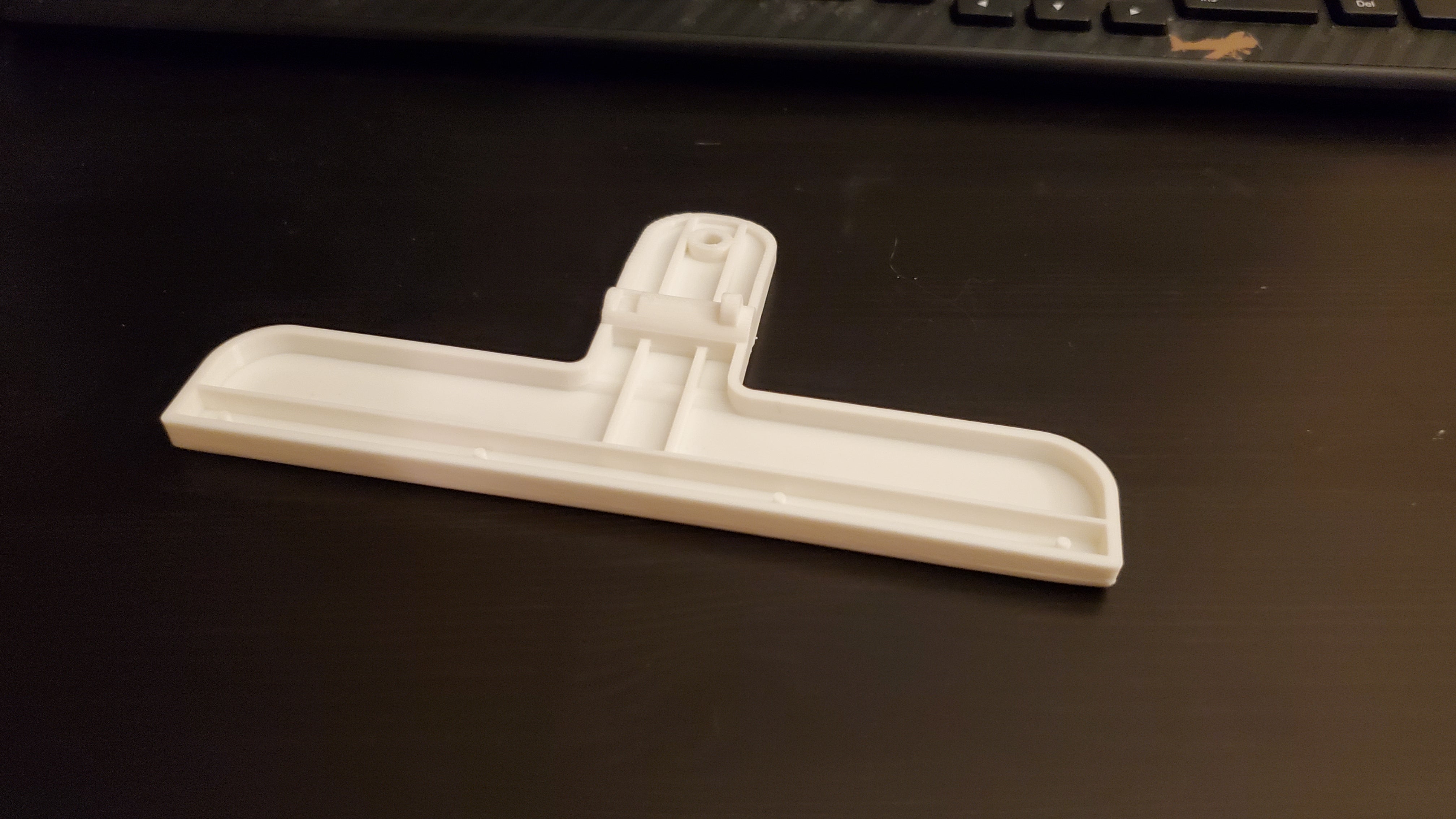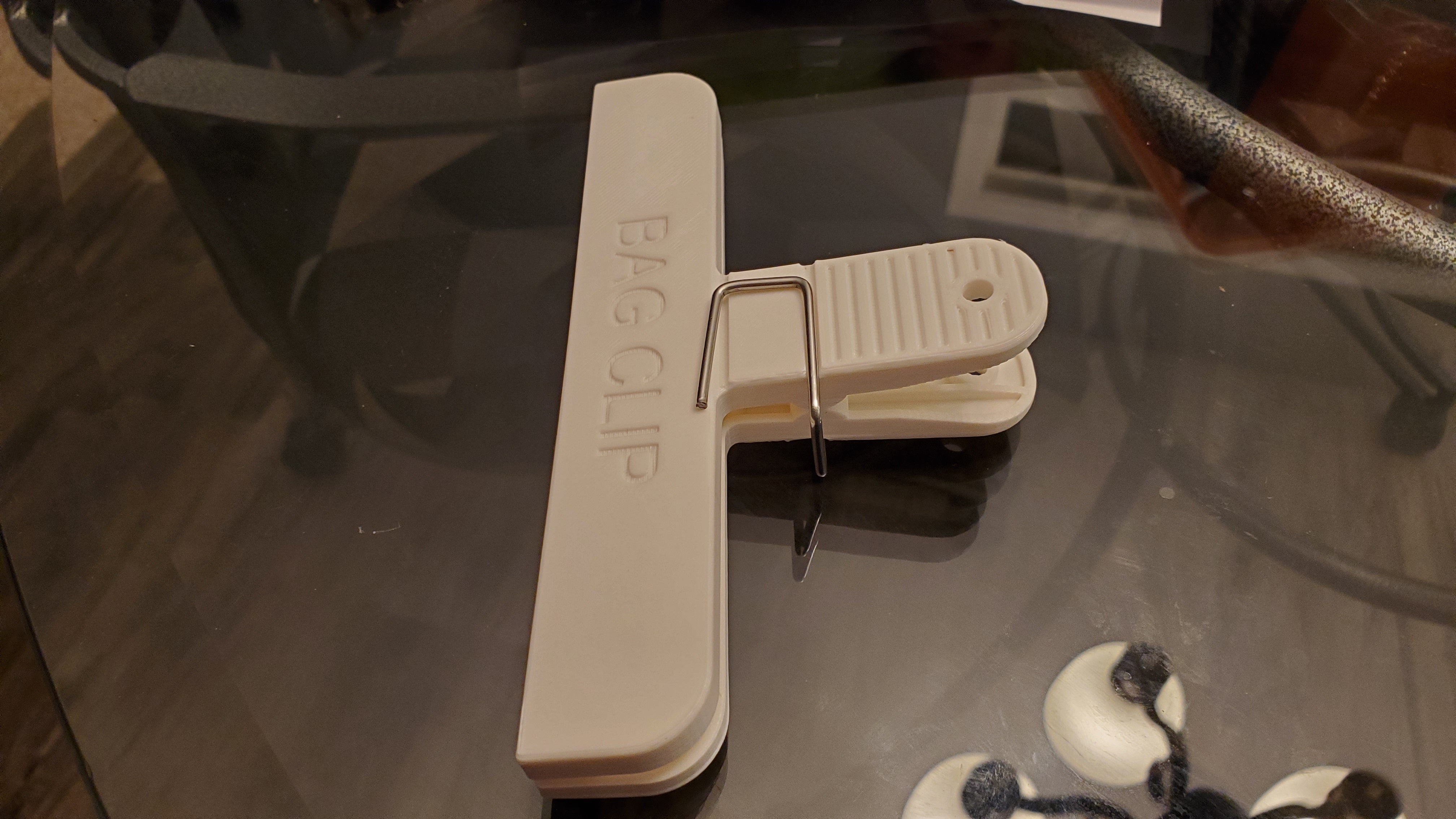 Dies ist ein Taschenclip, der Ihre Taschen geschlossen und den Inhalt frisch hält. Der Clip ist symmetrisch gestaltet, sodass Sie nur zwei Teile drucken müssen, damit sie zusammenpassen. Wenn Sie keine Feder haben, können Sie einfach ein Gummiband um die Rille Ihrer Wahl wickeln.