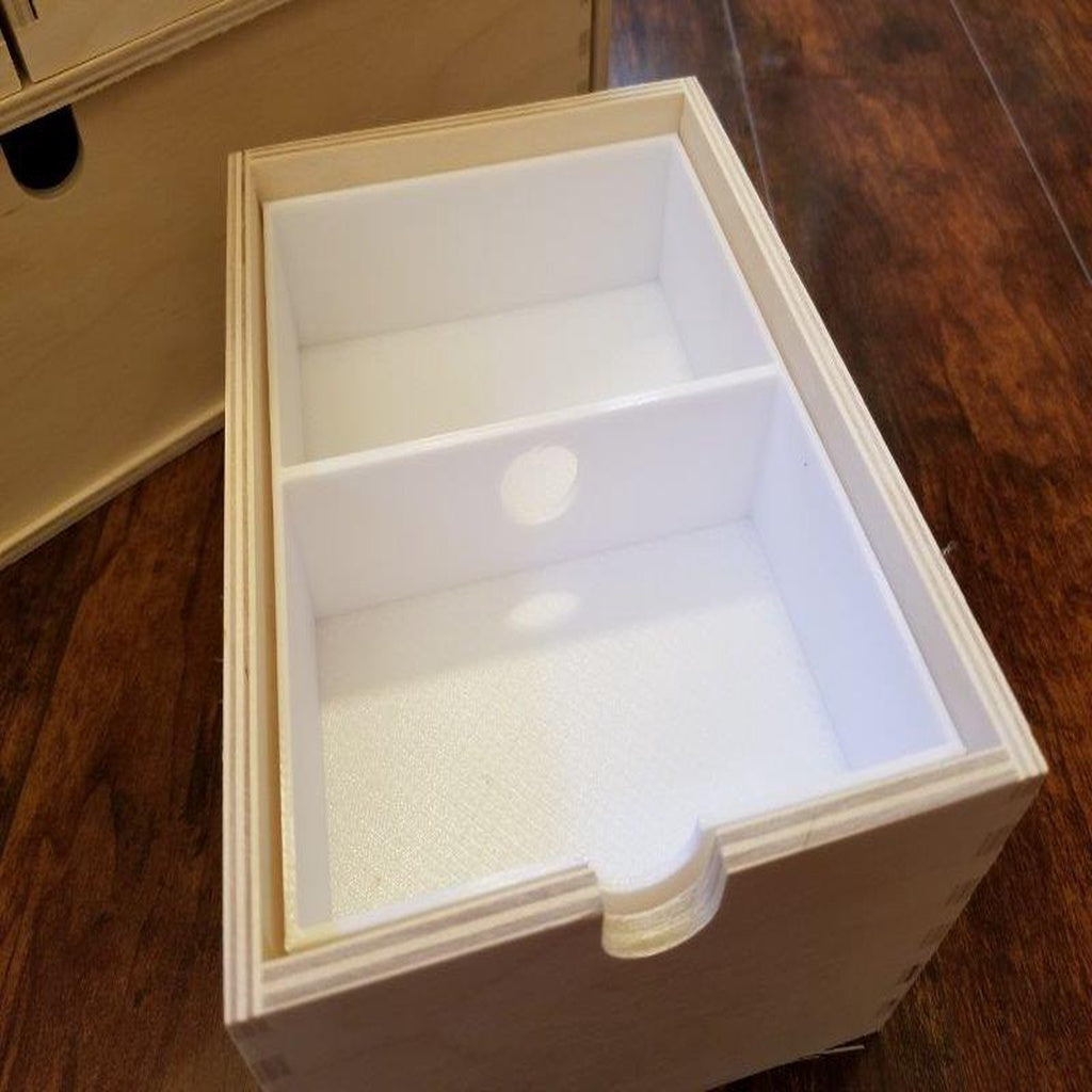 Dies sind Einsatzorganisatoren für Ikea MOPPE-Schubladen. Diese passen in die kleineren Schubladen des Moppe-Organizers. Die Unter- und Oberseite sind identisch, mit Ausnahme der Oberseite, die über eine Aussparung für einen Schubladenauszug verfügt.