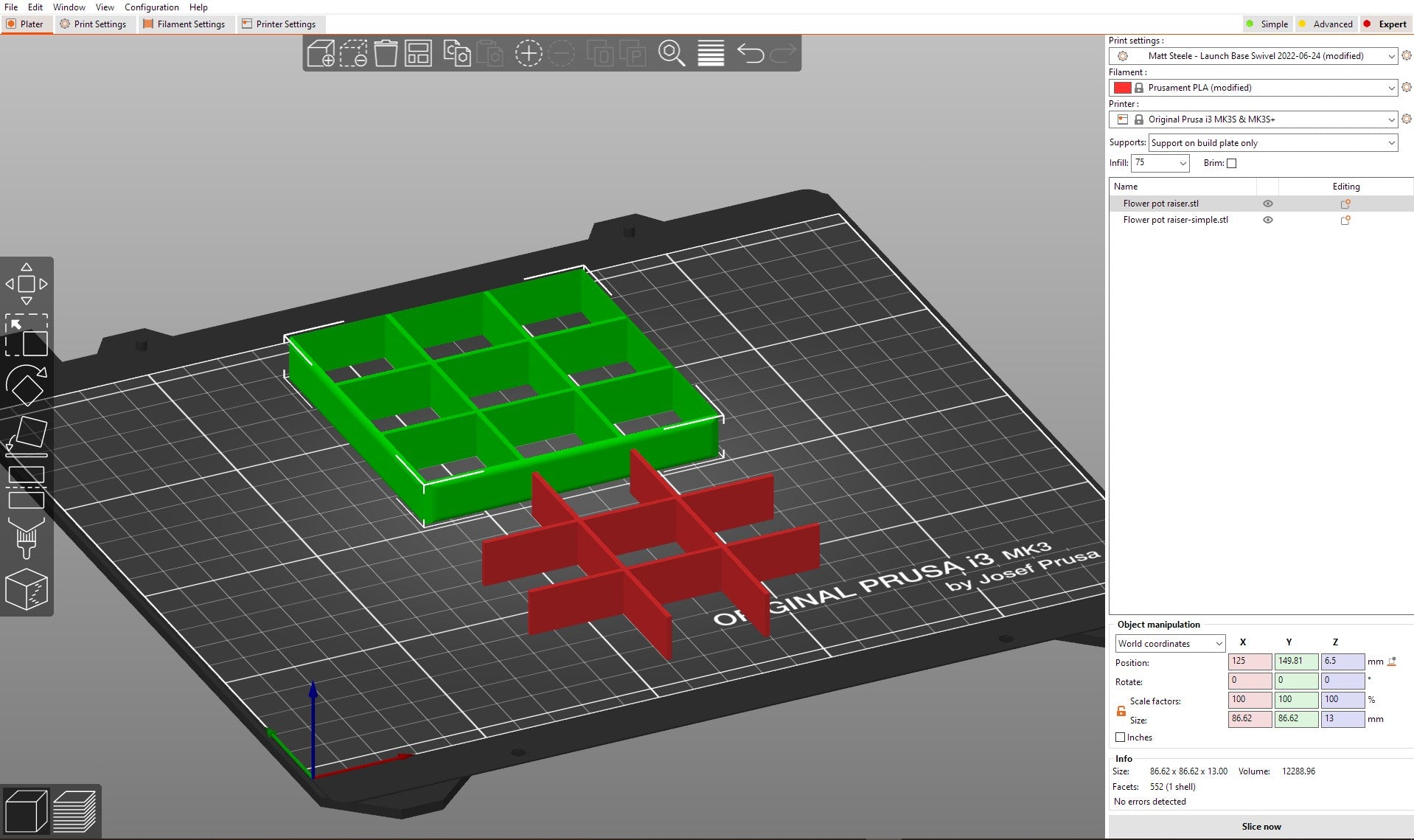 Die Pflanztopferhöhung ist eine einfache Variante ohne den üblichen Rand, funktioniert aber genauso effektiv. Mit diesem Produkt können Sie die X-, Y- und Z-Maße ganz einfach an Ihren Baumbehälter anpassen und entscheiden, wie hoch Sie Ihren Pflanztopf anheben möchten. Es gibt keine tragenden Strukturen. Verwenden Sie 4 oder 5 Perimeter, um Füllgeräusche zu vermeiden. Schichthöhe von 0,2 mm oder mehr – niemand wird es im Blumentopfbehälter sehen.