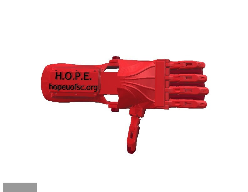 Wir sind eine Studentenorganisation, die sich zum Ziel gesetzt hat, allen Kindern durch 3D-Erstellung kostenlose Handprothesen zur Verfügung zu stellen. Wir sind eine ehrenamtliche gemeinnützige Organisation, die sowohl unsere kostenlosen Dienste als auch Forschung und Entwicklung zur Verbesserung finanziert. Alle Trinkgelder werden für unsere Arbeit gespendet und können eingefordert werden. Für weitere Informationen oder um einen Beitrag zu leisten, besuchen Sie www.hopeuofsc.org.