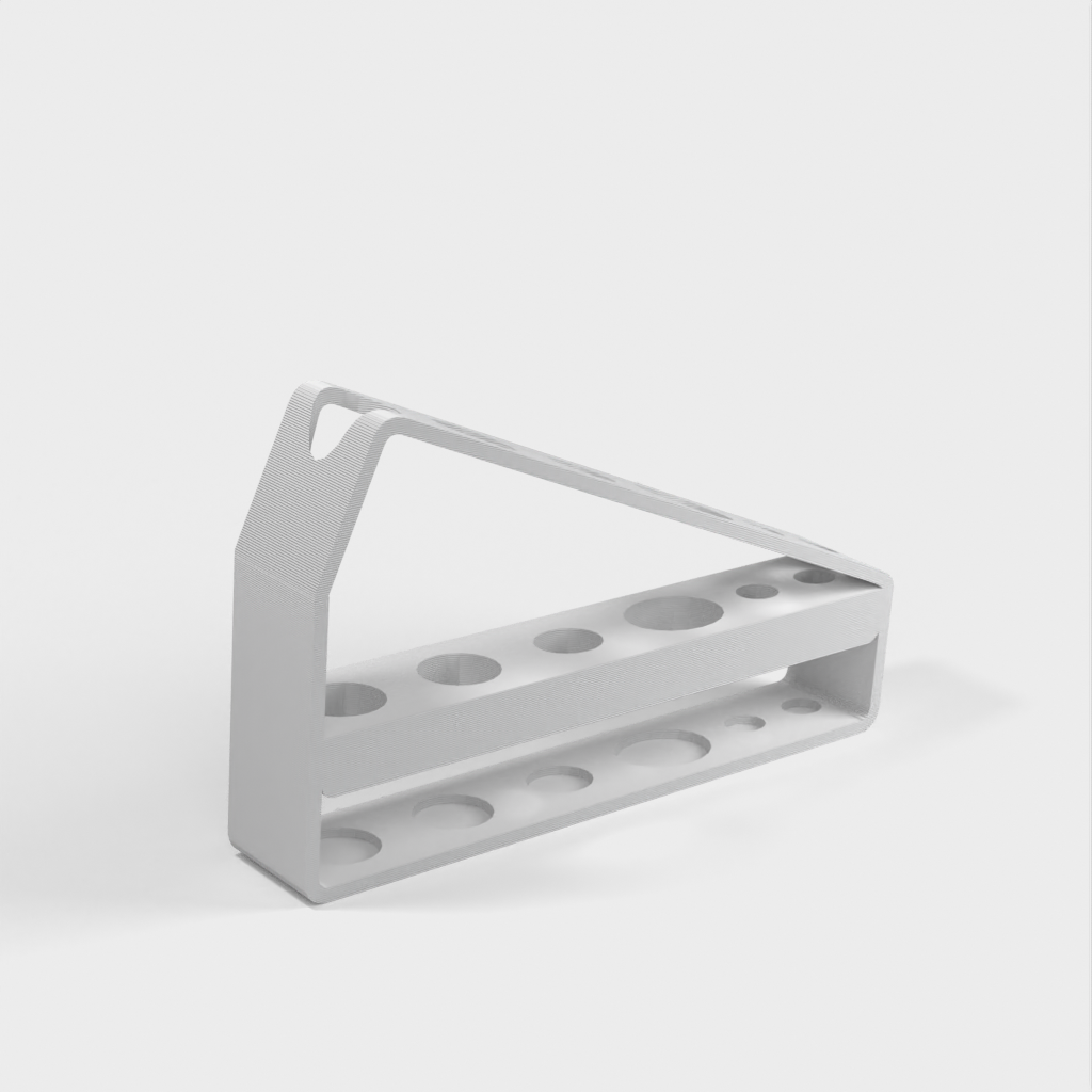 Ein einfacher Zahnbürstenhalter für 3 normale Curaprox-Zahnbürsten, 2 kleine Bürsten und 1 Kinderbürste. Für mehr Stabilität ist es unten verklebt. So bleibt Ihr Badezimmer organisiert und Ihre Zahnbürsten an einem Ort.