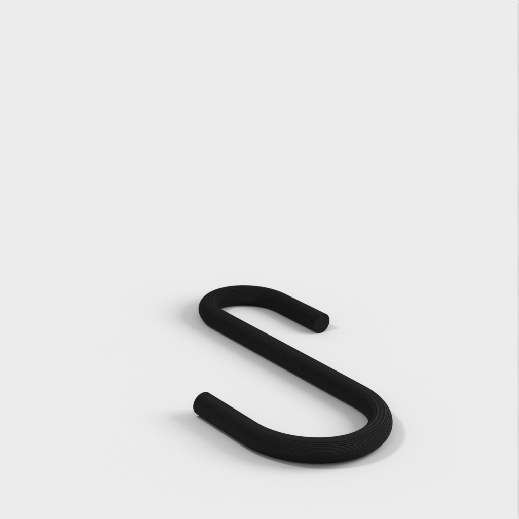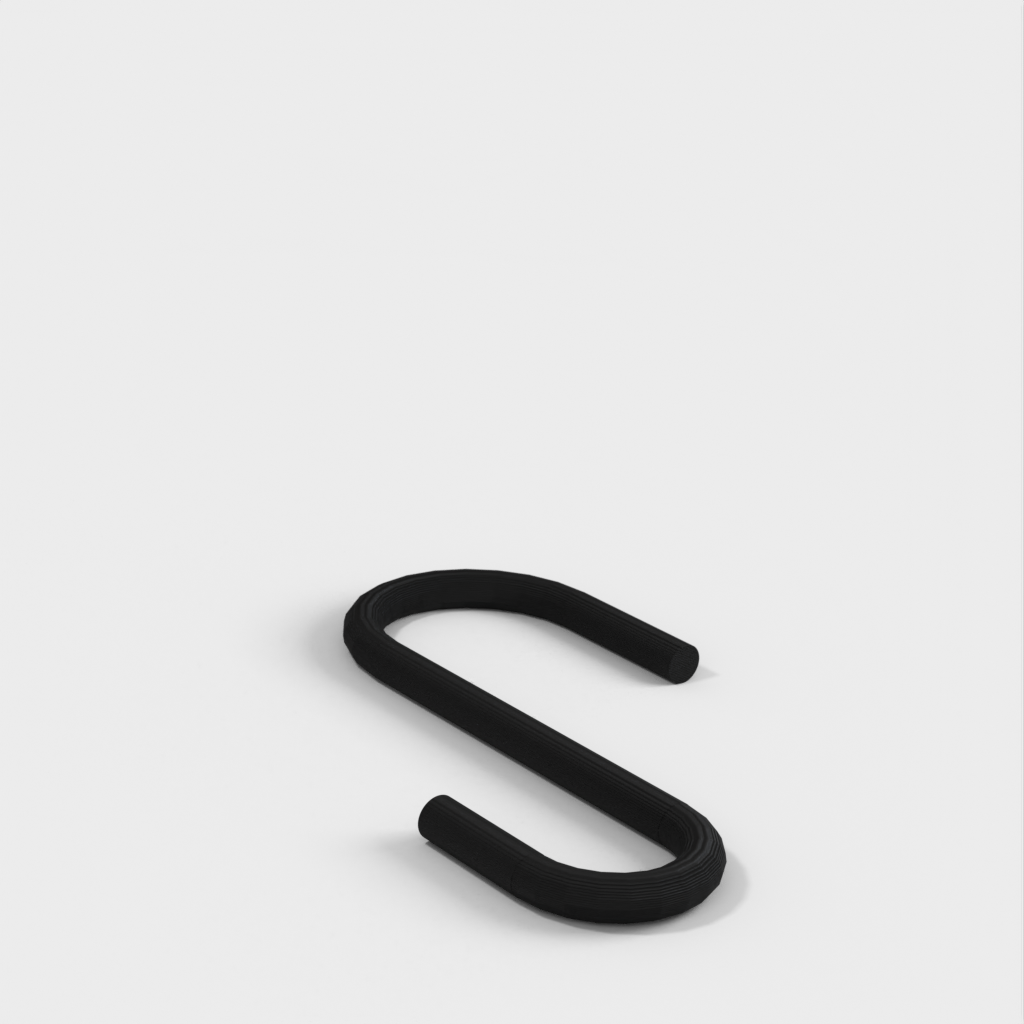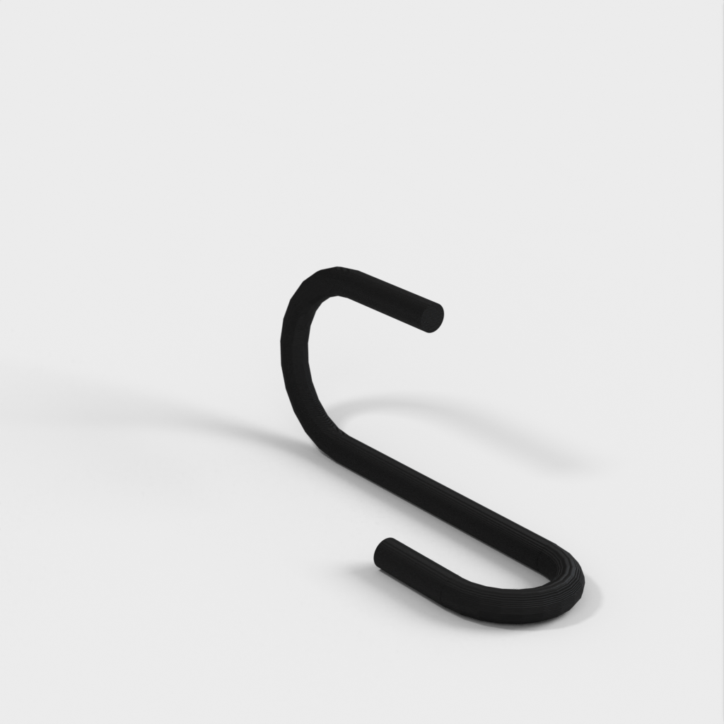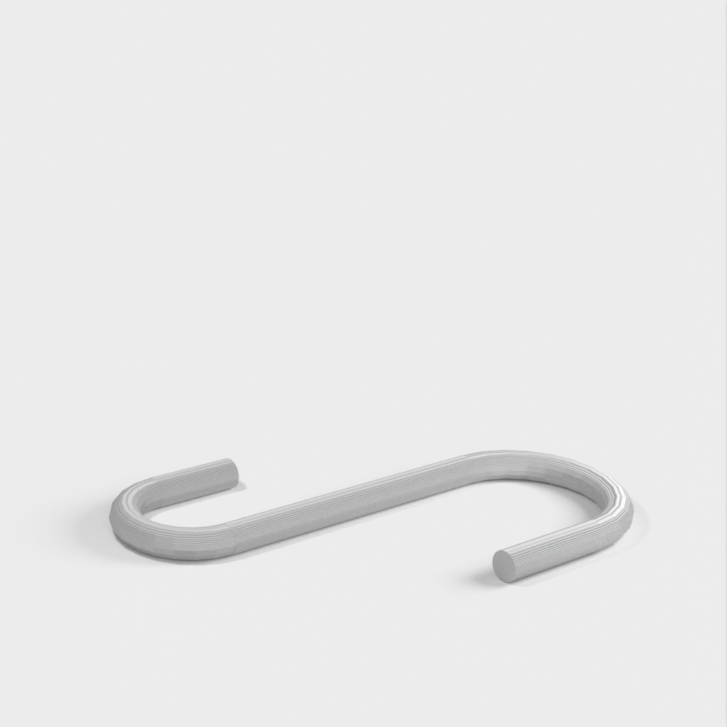 Ich habe eine „umgekehrte“ Version hinzugefügt, bei der die beiden Hakenenden im rechten Winkel zueinander stehen. Dadurch ist es möglich, breite Gegenstände wie eine Bratpfanne mit einem deutlich platzsparenderen Profil aufzuhängen als mit dem normalen Haken.