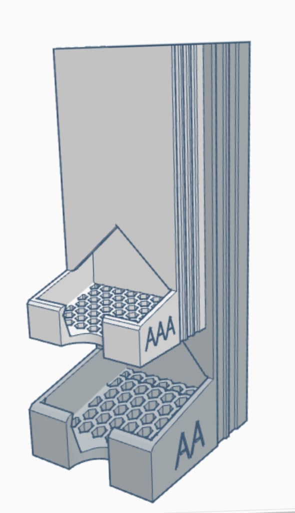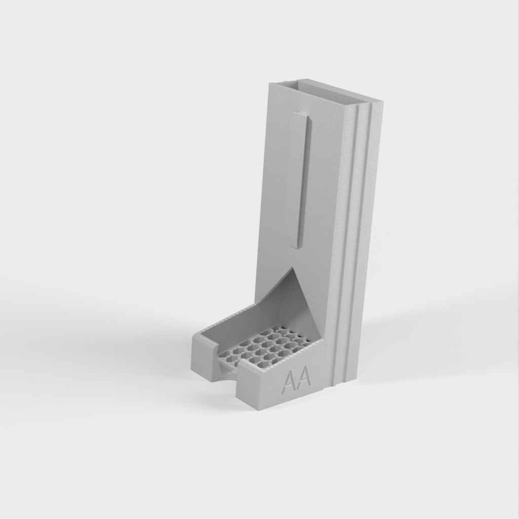 Batteriehalter für AA- und AAA-Batterien. Halterungen sind montierbar und eine Wandhalterung ist erhältlich. Es ist ein praktisches und geräumiges System zur Aufbewahrung Ihrer Batterien und sorgt für Ordnung und Ordnung in Ihrem Bereich.