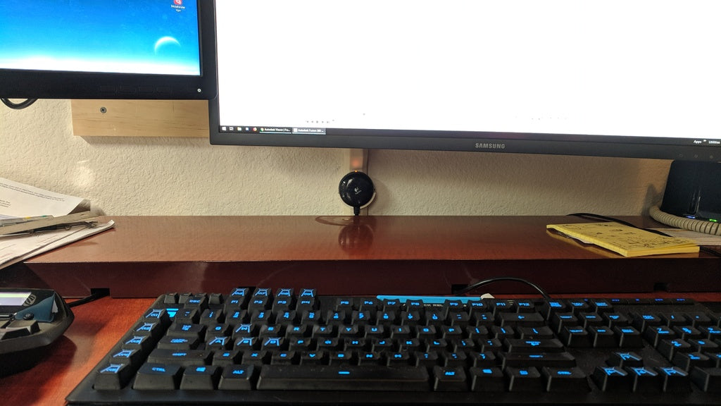 Kabelkanal für Computer-Setup mit Logitech Lautstärkeregler-Halterung