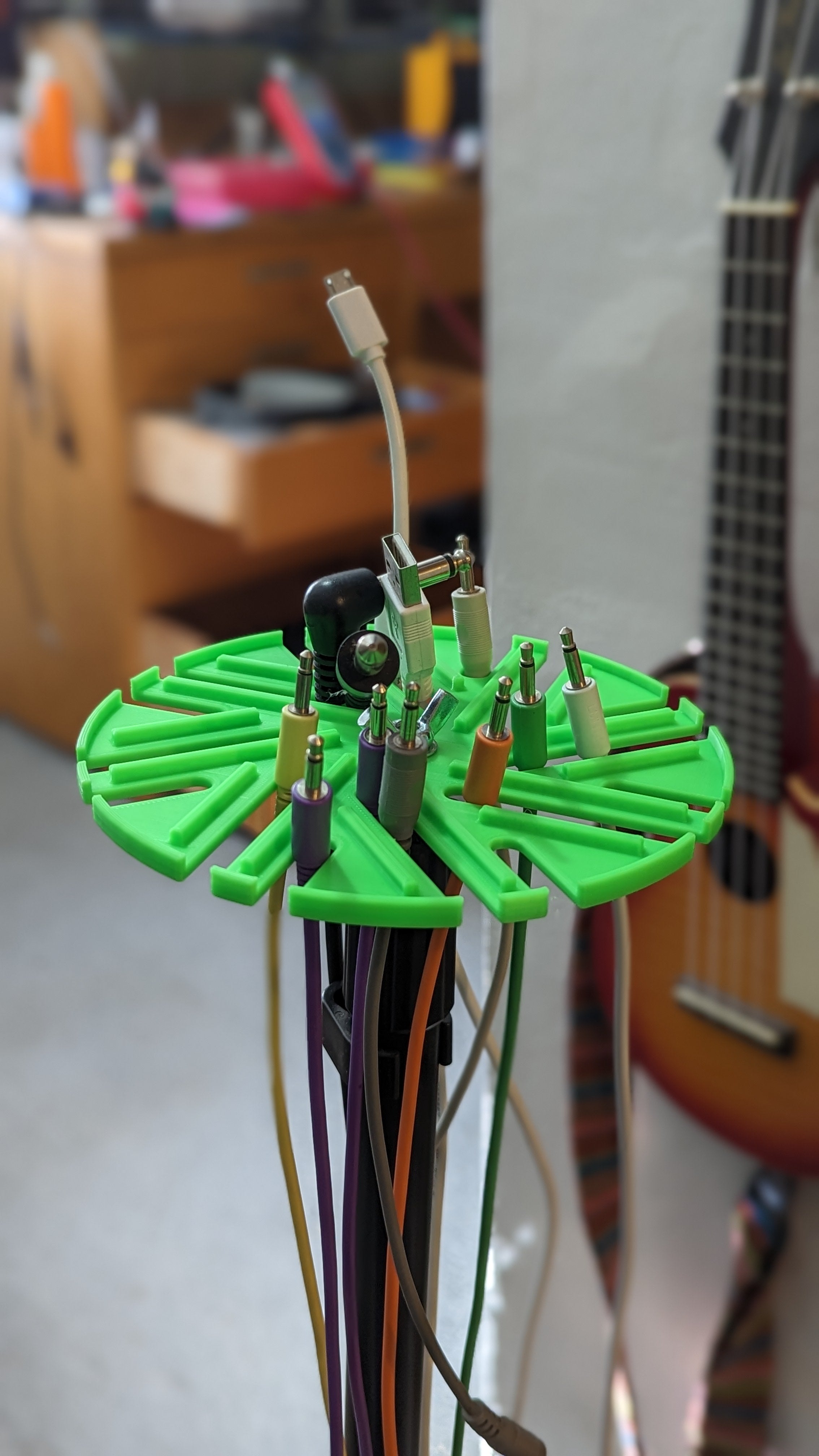 Dieser clevere Kabelhalter ist dafür konzipiert, Ihre modularen Synthesizer-Patchkabel und andere kürzere Kabel ordentlich zu organisieren und vom Boden fernzuhalten. Dank seiner vielseitigen Konstruktion hebt sich dieser Kabelhalter von fest montierten Wandlösungen ab, da er frei platziert werden kann, wo immer Sie ihn benötigen.