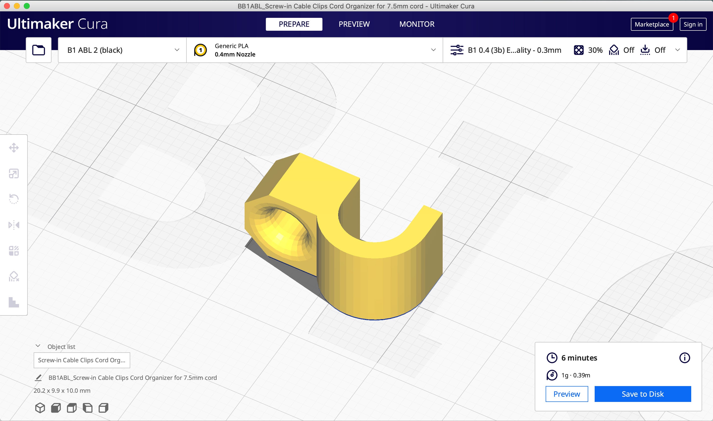Einschraubbarer Kabelclip und Kabelorganisator für Kabel mit 7,5 mm oder kleiner