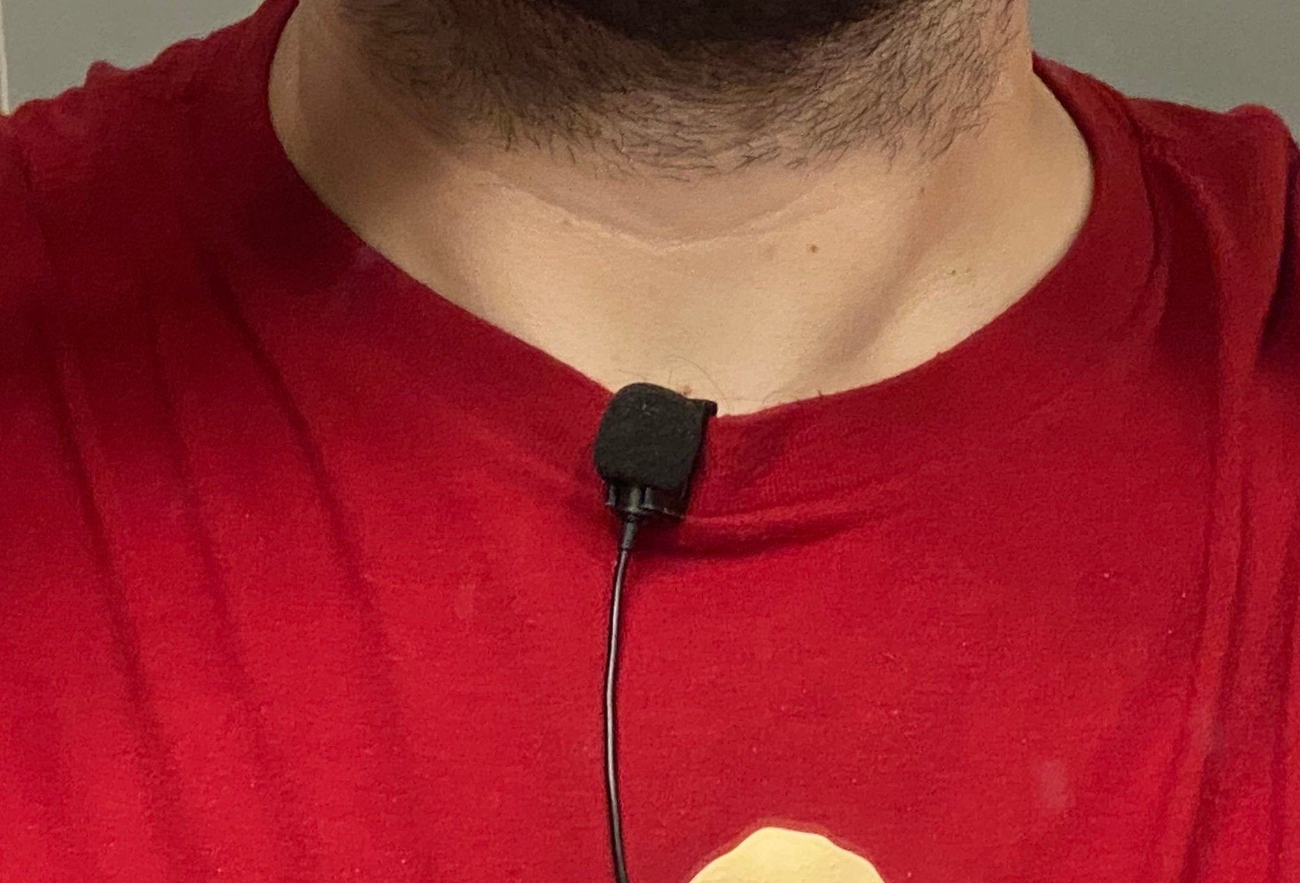 Einfacher Boya M1 (Lavalier) Mikrofon-Shirt-Clip. Dieser Clip eignet sich perfekt für T-Shirts und lässt sich einfach am Kragen befestigen, sodass das Mikrofon problemlos vertikal gehalten werden kann. Sollte mit jedem Lavalier-Mikrofon mit etwa 6 mm Hals und relativ kleinem Kopf kompatibel sein.