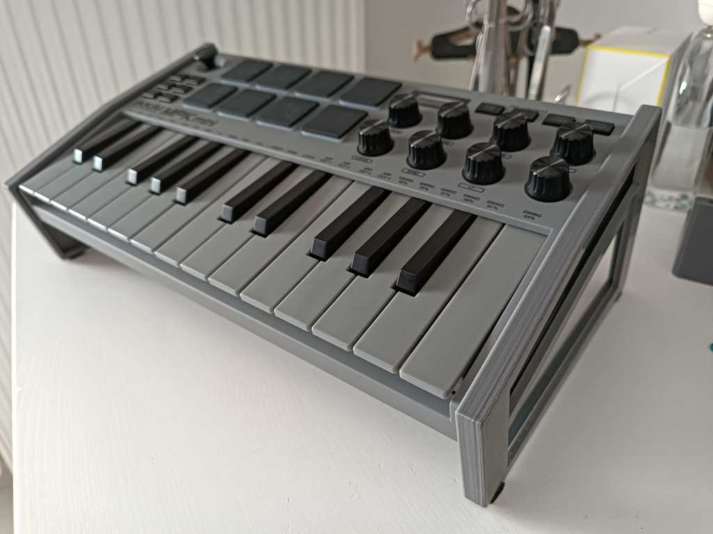 Dies ist eine Version des AKAI MPK Mini Keyboardständers. Diese Version ist um 15 Grad geneigt, um eine bessere Sicht auf die Tastatur zu erhalten.
