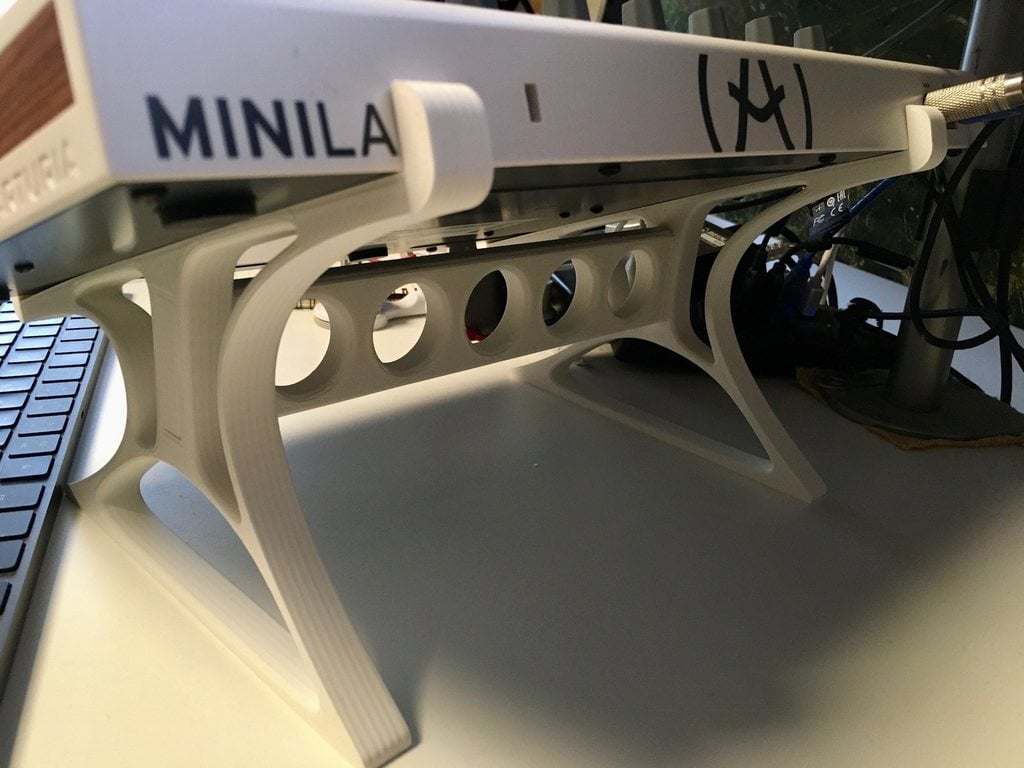 Der Arturia Minilab Mk II Tischständer neigt Ihre Tastatur, wodurch die Bedienfelder besser zugänglich sind und gleichzeitig der Platz darunter genutzt wird. Der Ständer ist stabil genug, um Ihre Tastatur sicher zu halten, hat aber dennoch ein schlankes und elegantes Design. Es ist so gefertigt, dass es in die Gummifüße passt und verhindert, dass Schrauben aus der Unterseite herausragen. Zur einfachen Montage sind zwei identische Vertikalteile und ein Querträger im Lieferumfang enthalten.