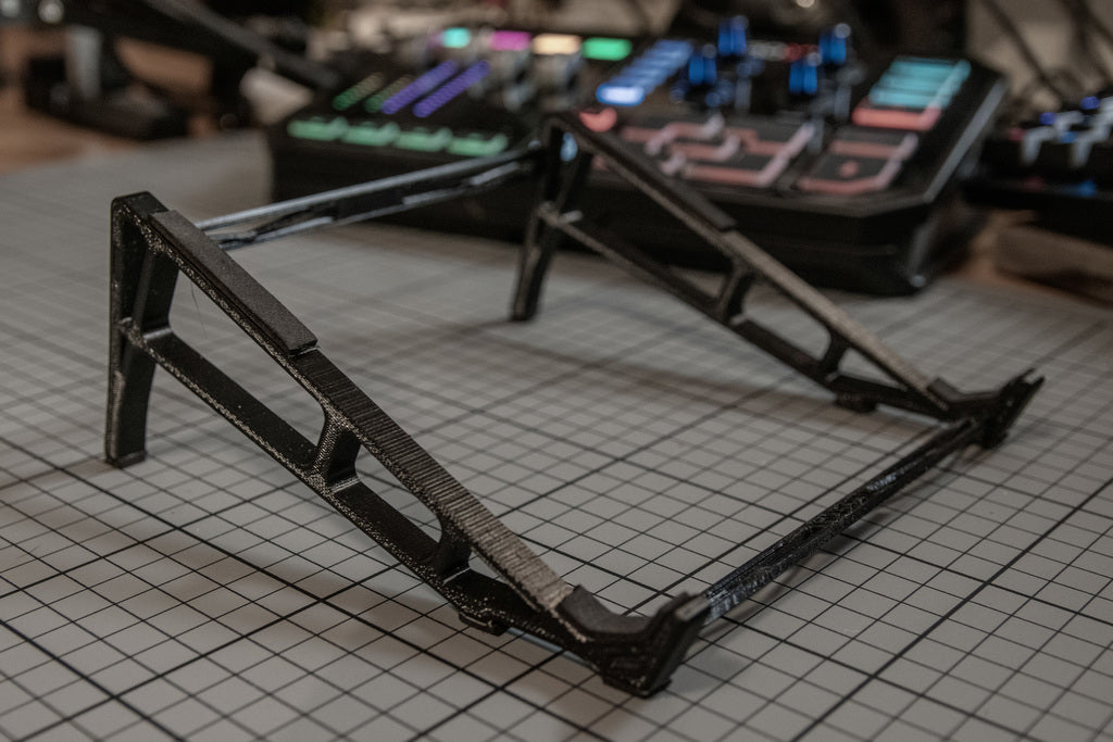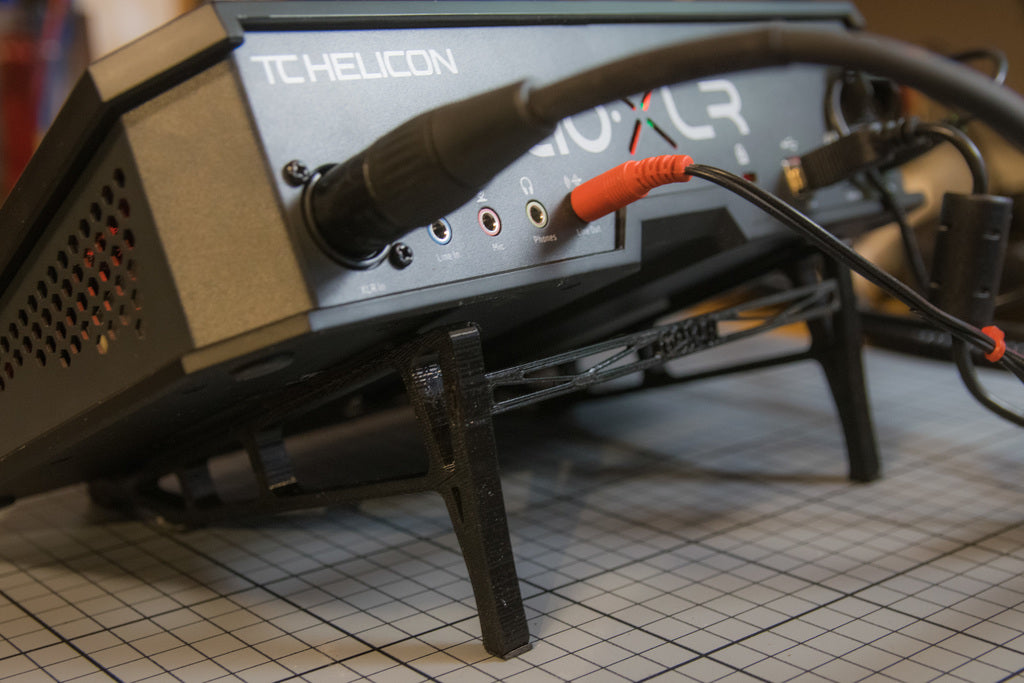 GoXLR-Audioschnittstellenfunktion, um alles ein wenig zugänglicher zu machen. Es neigt die Schnittstelle um ca. Die Vorderseite ist um ca. 25° auf eine neue Gesamthöhe von 14cm angehoben, sodass überschüssiges Kopfhörer- oder Tastaturkabel darunter verstaut werden kann. Sie müssen beide Teile zweimal drucken. Siehe auch Version 2 des Ständers, der auch die Mini-Version unterstützt.