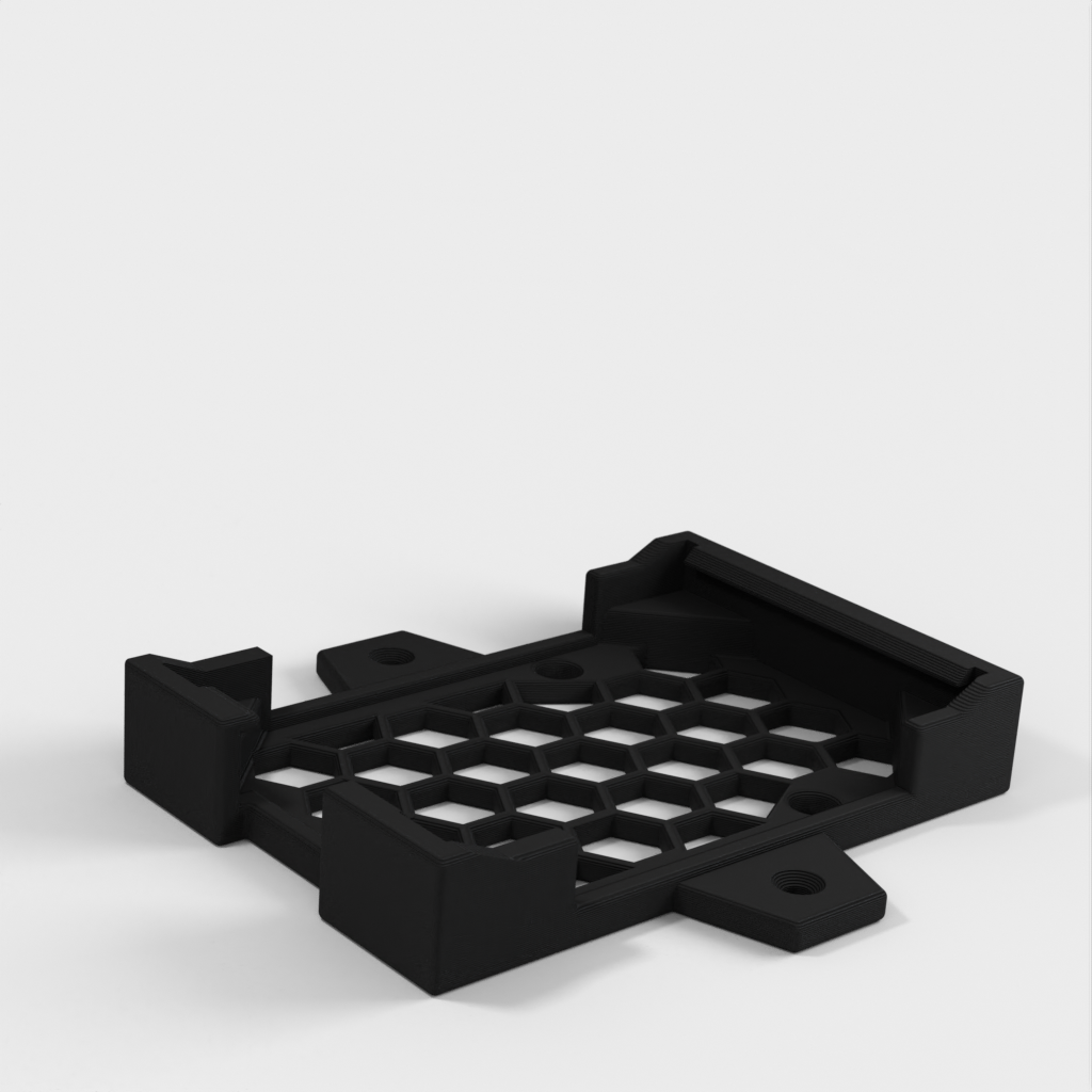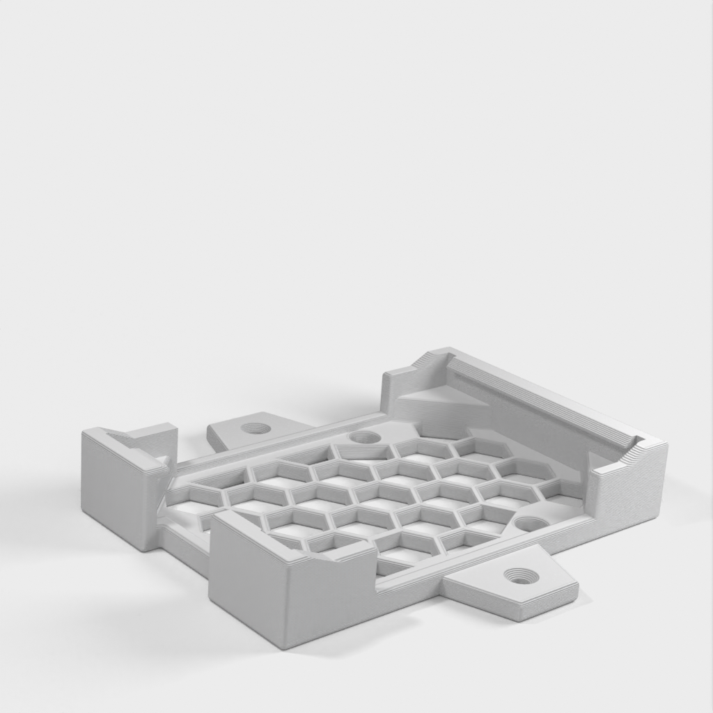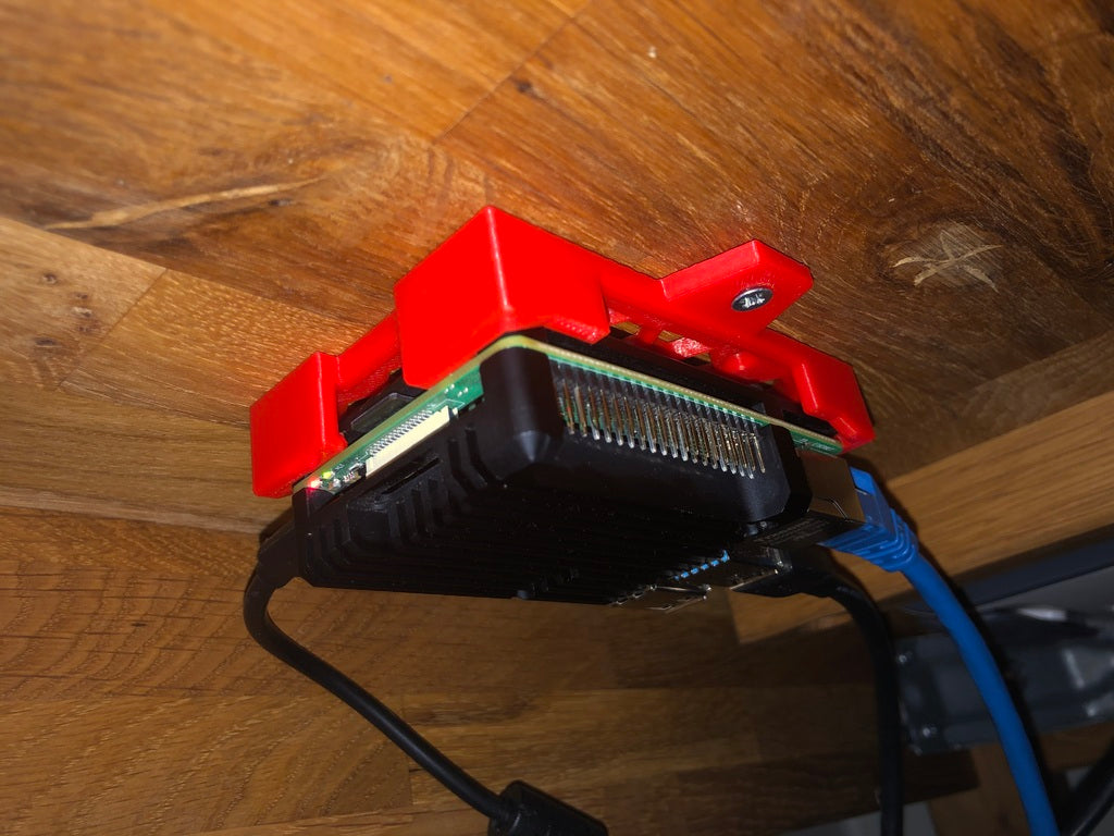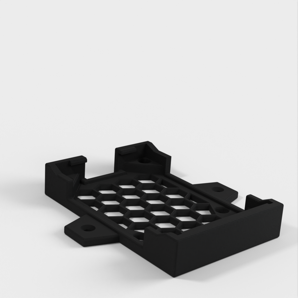 Dies ist eine einteilige Halterung für das Raspberry Pi 4 Geekworm Armor Case, die die Montage unter einem Schreibtisch oder an der Wand ermöglicht. Obwohl der Koffer nicht über Ankerlöcher verfügt, wie es bei vielen Koffern der Fall ist, hält dieser ihn sehr sicher. Die Schraubenlöcher sind mit dem RP4 in der Halterung zugänglich und können entfernt werden, wenn die Halterung nicht an der Wand/dem Schreibtisch befestigt ist, aber wenn sie angebracht ist, wäre das eine Herausforderung. Es gibt eine kleine Öffnung in der Halterung für Luftzirkulation/Kühlung unter dem Pi, der kühler laufen sollte, als wenn er nur auf einem Schreibtisch sitzt.