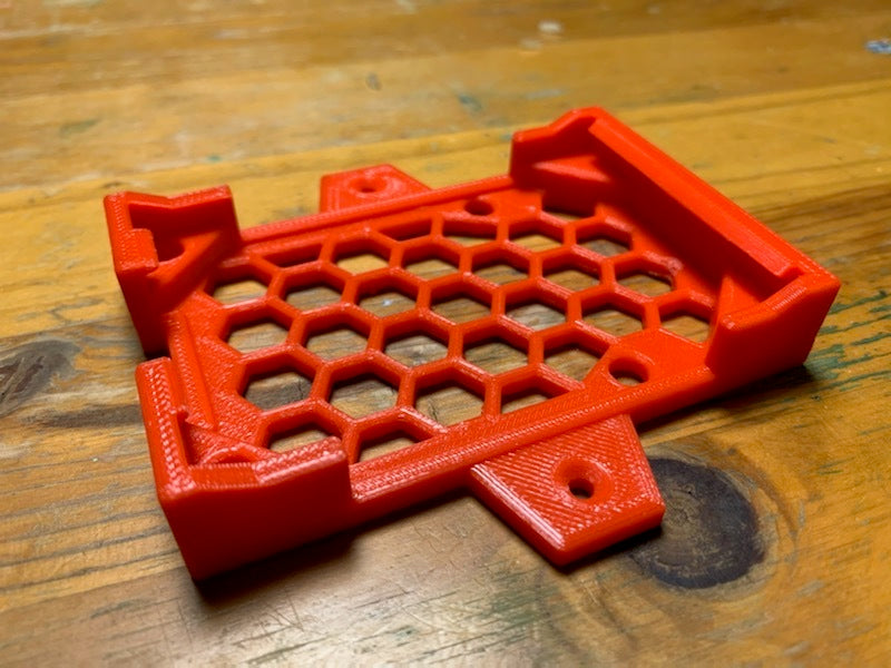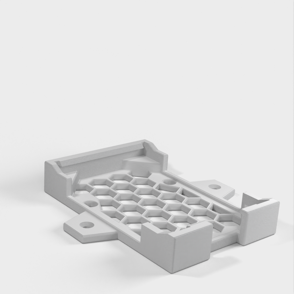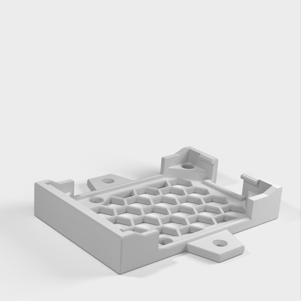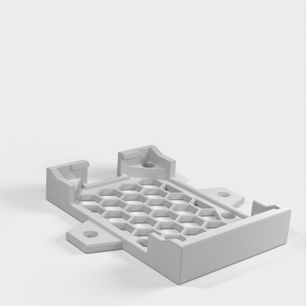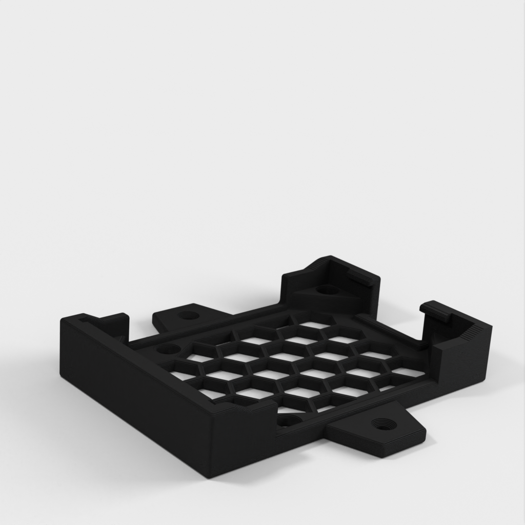 Dies ist eine einteilige Halterung für das Raspberry Pi 4 Geekworm Armor Case, die die Montage unter einem Schreibtisch oder an der Wand ermöglicht. Obwohl der Koffer nicht über Ankerlöcher verfügt, wie es bei vielen Koffern der Fall ist, hält dieser ihn sehr sicher. Die Schraubenlöcher sind mit dem RP4 in der Halterung zugänglich und können entfernt werden, wenn die Halterung nicht an der Wand/dem Schreibtisch befestigt ist, aber wenn sie angebracht ist, wäre das eine Herausforderung. Es gibt eine kleine Öffnung in der Halterung für Luftzirkulation/Kühlung unter dem Pi, der kühler laufen sollte, als wenn er nur auf einem Schreibtisch sitzt.