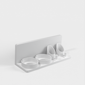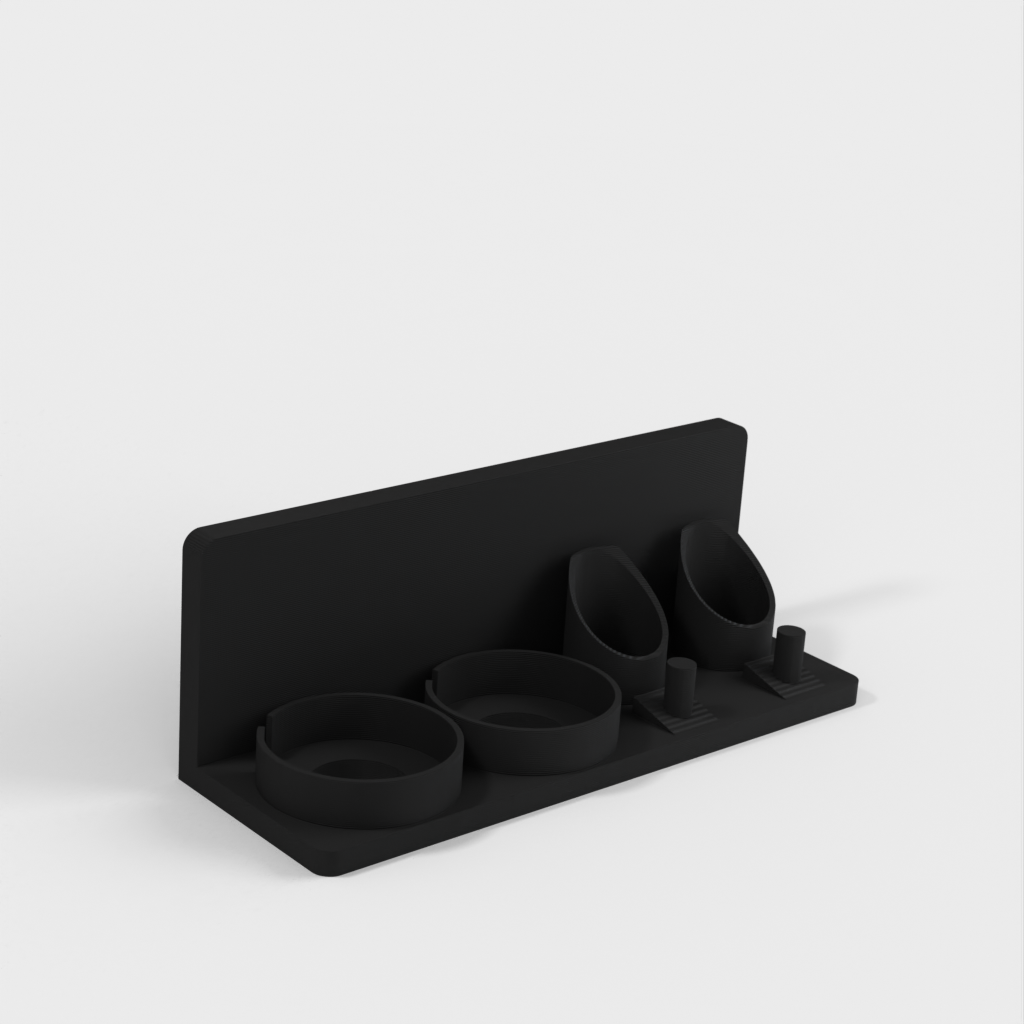 Einfache Halterung für 2 Oral-B iO Serie 7, 8 und 9 Zahnbürsten sowie 2 Ladegeräte.