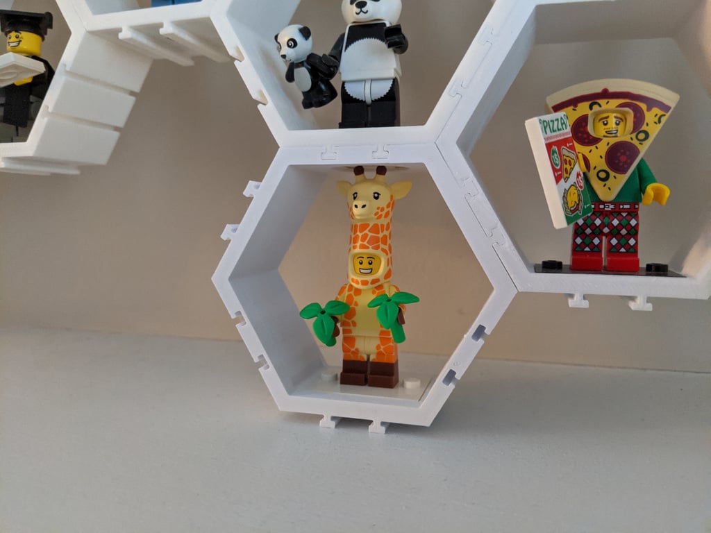 Präsentieren Sie Ihre Minifiguren stilvoll mit diesem einzigartigen sechseckigen Displaysystem. Jede Zelle ist für eine Minifigur mit 4x3-Sockel ausgelegt und bietet so perfekten Sitz und eine stromlinienförmige Ästhetik. Das System ist vielseitig und lässt sich an verschiedene Stile anpassen.
