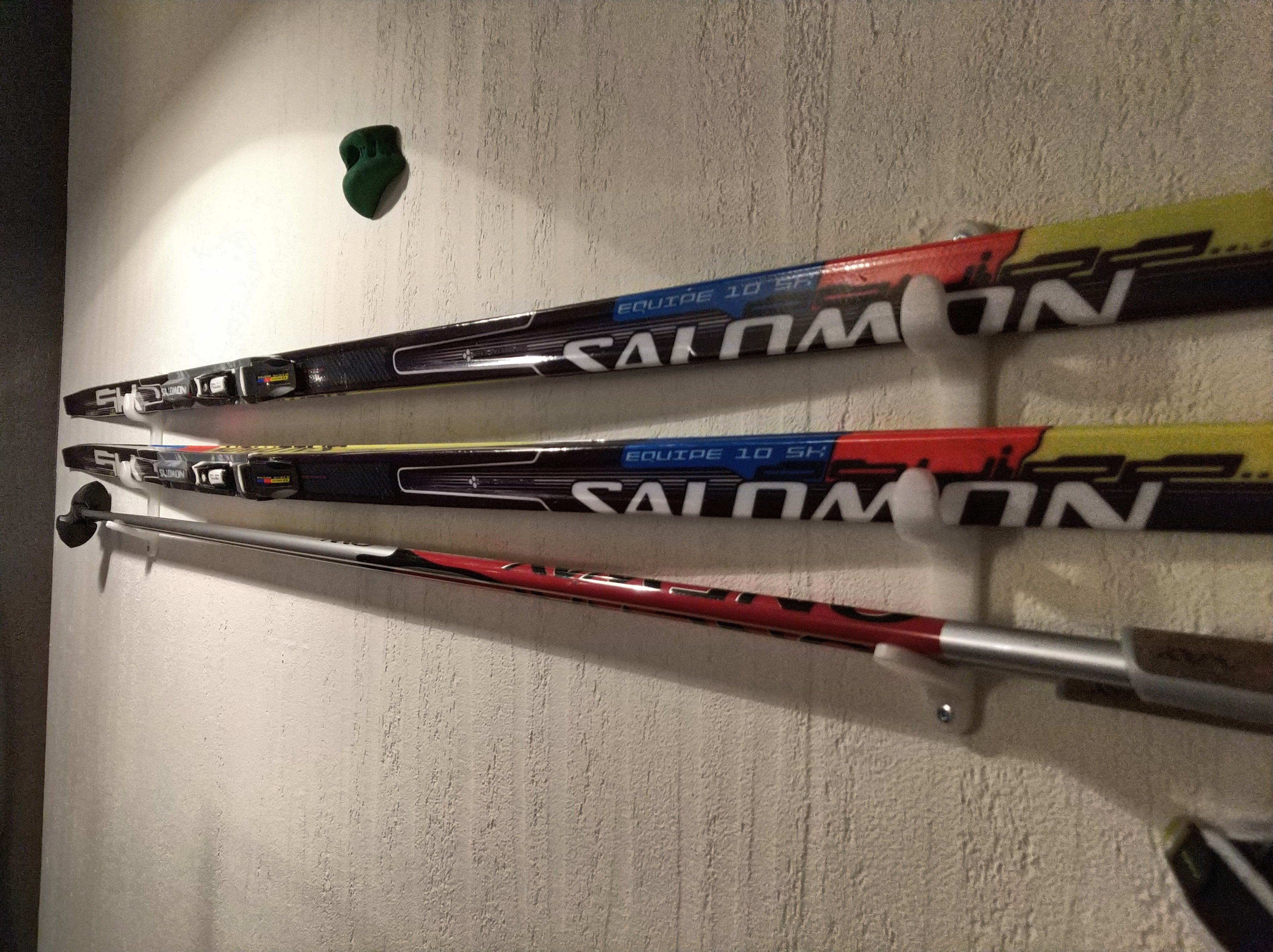 Dies ist eine Wandhalterung für Skier und Stöcke. Es wurde sorgfältig entwickelt, um sicherzustellen, dass Ihre Skier und Stöcke sicher aufbewahrt werden, wenn sie nicht verwendet werden, und hilft so, mehr Platz in Ihrem Lager oder Ihrer Garage zu schaffen. Der Halter ist einfach zu installieren und ermöglicht Ihnen einen schnellen und einfachen Zugriff auf Ihre Ausrüstung.