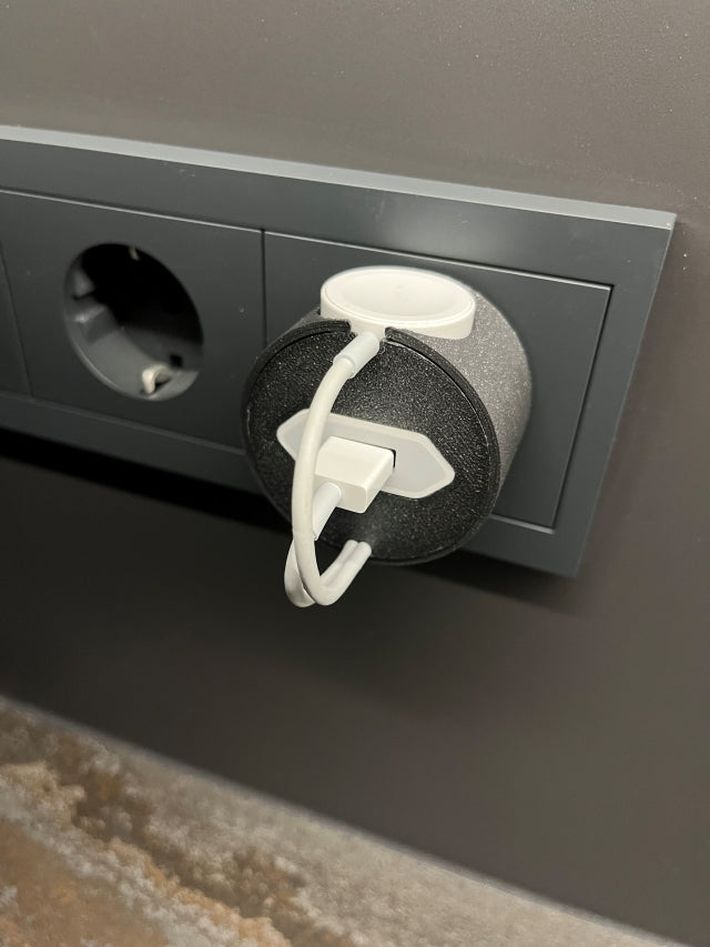 Dies ist eine Ladestation, die speziell für Ihre Apple Watch entwickelt wurde. Es ist perfekt, um Ihre Uhr während des Ladevorgangs organisiert und geschützt aufzubewahren. Es ist mit europäischen Steckdosen kompatibel und einfach zu montieren. Mit der Möglichkeit, das Kabel mit der mitgelieferten Kabelabdeckung abzudecken, sorgen Sie für optimalen Schutz und Ordnung. Stecken Sie einfach den USB-Stromstecker ein, rollen Sie Ihr Kabel wie im Bild gezeigt auf, stecken Sie das Ladepad ein und schon ist Ihr Apple Watch Dock V2 einsatzbereit.
