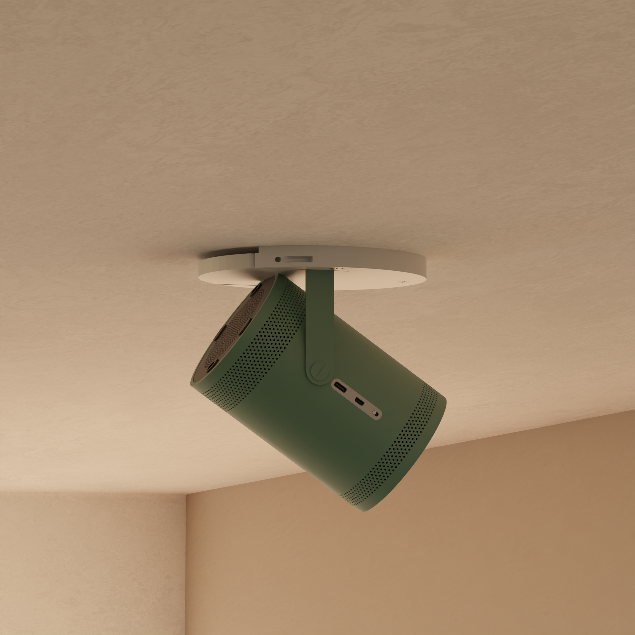 Hierbei handelt es sich um eine Deckenhalterung für einen Samsung Freestyle Beamer, die eine schnelle Montage und Demontage des Beamers ermöglicht. Der Beamer sollte problemlos Platz finden und dort auch bleiben.