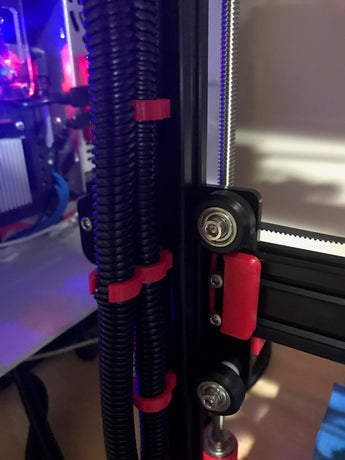 Die Klemme eignet sich besonders für die Verwendung mit 3/8-Zoll-Kabeln, einschließlich geteiltem Kabelbaum, für eine noch effizientere und professionellere Installation. Egal, ob Sie an einem 3D-Drucker, einem CNC-Maschinenprojekt oder einem anderen Bau mit 2020-Extrusionen arbeiten, diese Kabelklemme sorgt für ein sauberes und ordentliches Finish. Sie ist auch in einer Doppelklemmenversion für noch mehr Flexibilität bei Ihrer Verkabelung erhältlich.