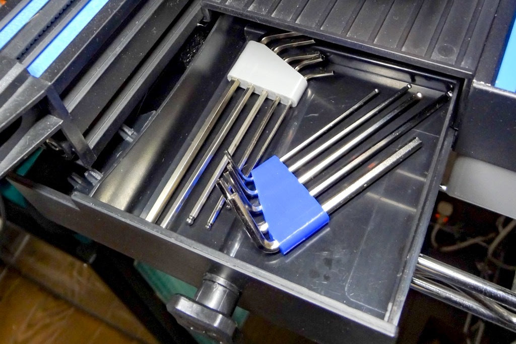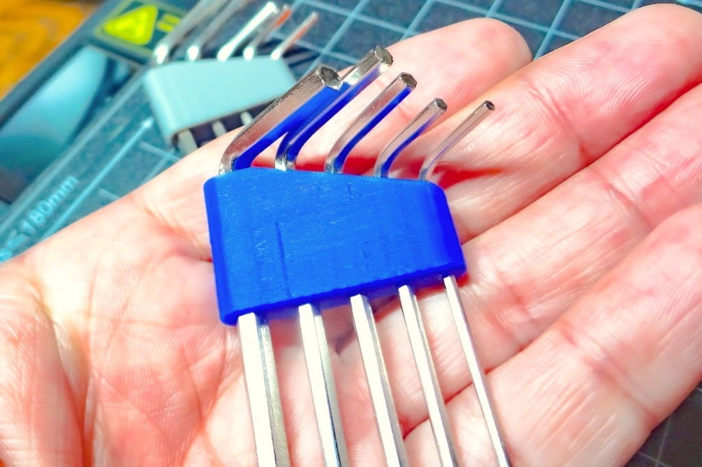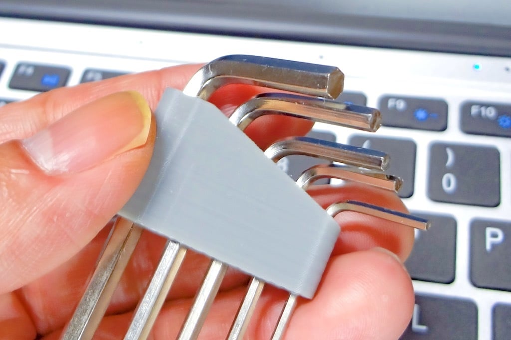 Einfacher und kompakter Innensechskantschlüsselhalter. Dieser kleine Innensechskantschlüsselhalter bietet Platz für insgesamt 5 Innensechskantschlüssel (1,5 mm / 2,0 mm / 2,5 mm / 3,0 mm / 4,0 mm), die mit einem allgemeinen 3D-Drucker geliefert werden. Es ist kompatibel mit Ender3 V2, Artillery Genius, Kingroon KP3S usw.