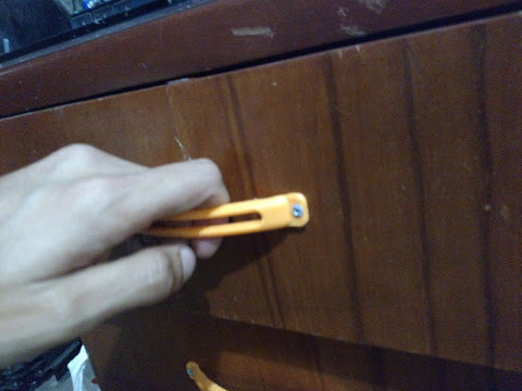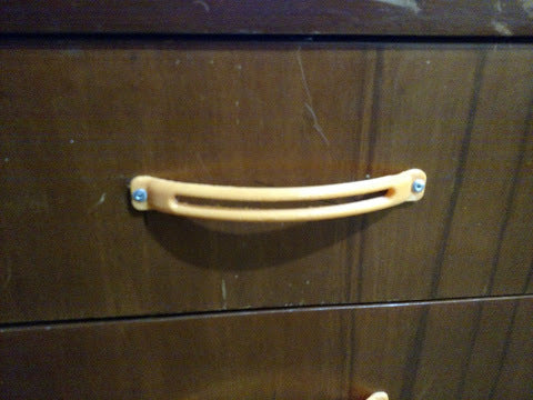 Einfacher Schubladengriff für Gamel-Möbel. Dieser einfache Griff lässt sich einfach mit Popnieten an Ihrem Tisch oder Schrank befestigen und erleichtert so das Herausziehen Ihrer Schubladen. Keine Schrauben erforderlich.