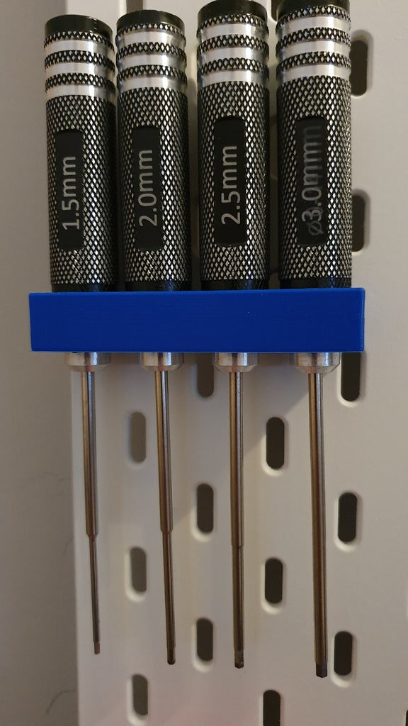 Sechskantschraubendreherhalter für IKEA Skadis. Dieser Halter erleichtert die Organisation Ihres Arbeitsplatzes oder Ihrer Werkstatt. Es lässt sich einfach direkt auf einer Skadis-Platte montieren, wodurch Ihr Arbeitsplatz organisierter und aufgeräumter wird. Eine praktische Ergänzung für jede Werkstatt oder jedes Büro.