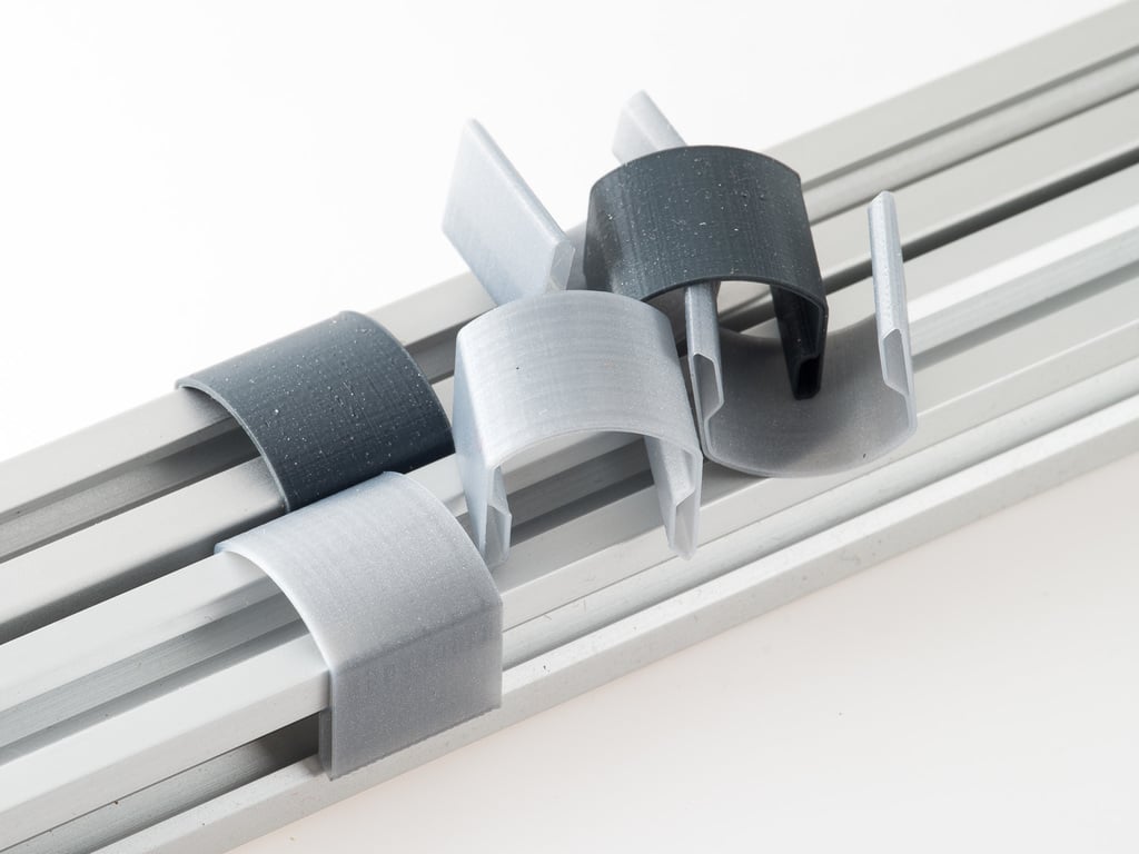 Der Kabelclip ist in zwei Versionen erhältlich, um eine optimale Passform zu gewährleisten: Eine Version ist für Misumi-Profile konzipiert und passt auch zu den meisten anderen ähnlichen Extrusionen, während die andere Version speziell an Open Builds V-Slot-Profile angepasst ist. So können Sie die Lösung wählen, die Ihren spezifischen Kabelmanagementanforderungen an Ihren Aluminiumstrukturen am besten entspricht.