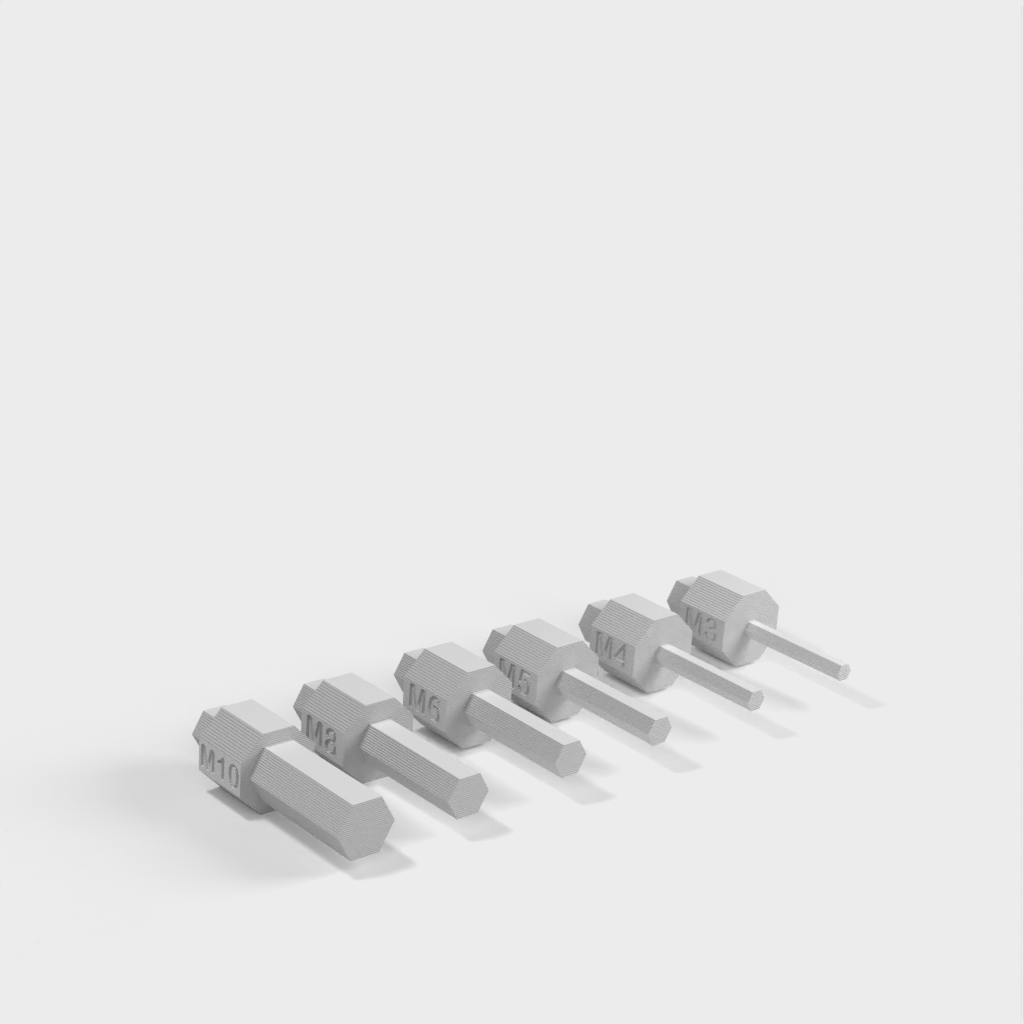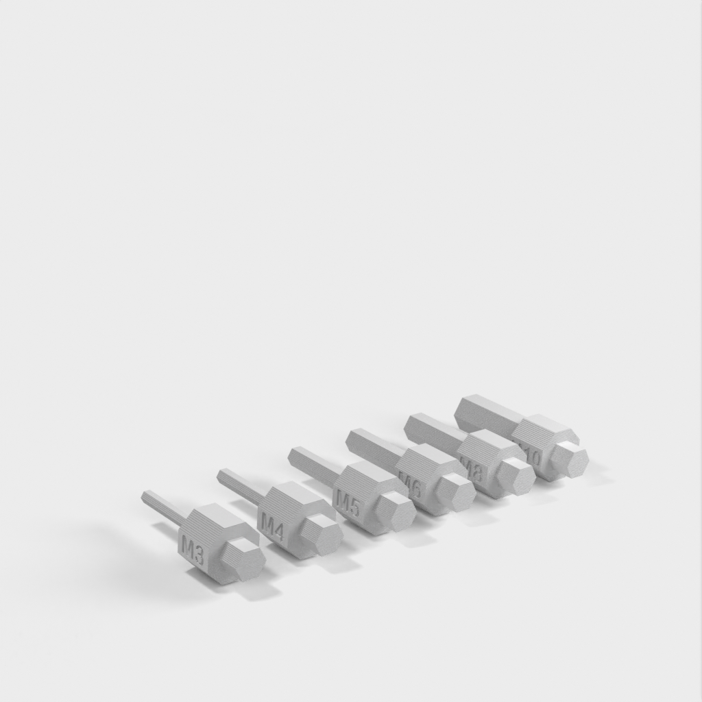 Sechskant-Inbusschlüsselsatz, OMT², in metrischen Größen von M3 bis M10. Dieses Set ist mit jedem Standard-Bithalter und/oder OMT²-Griff kompatibel. Das Set enthält die 6 am häufigsten verwendeten Inbusschlüssel. Die Vorteile dieses Sets bestehen darin, dass es kompakt, einfach zu lagern und zu verwenden ist. Das Set ist in vielen Situationen nützlich, in denen Sie möglicherweise einen Inbusschlüssel benötigen. Bedenken Sie, dass dieses Set niemals einen Satz Inbusschlüssel aus Metall vollständig ersetzen wird, es aber in manchen Fällen nützlich sein kann.