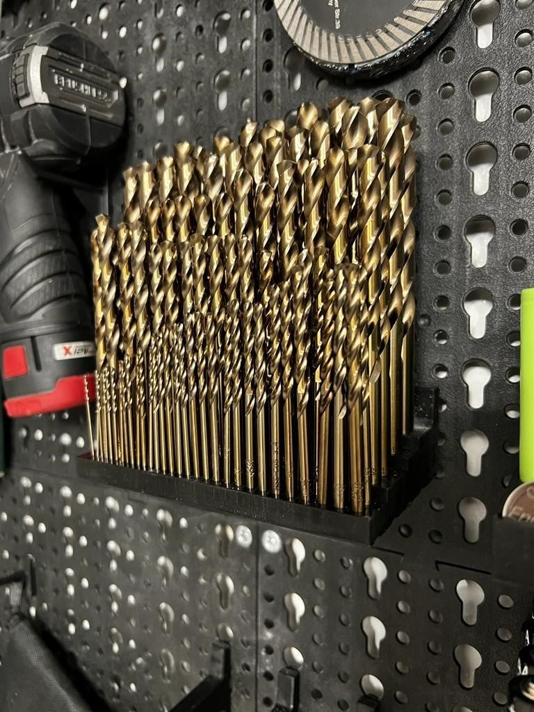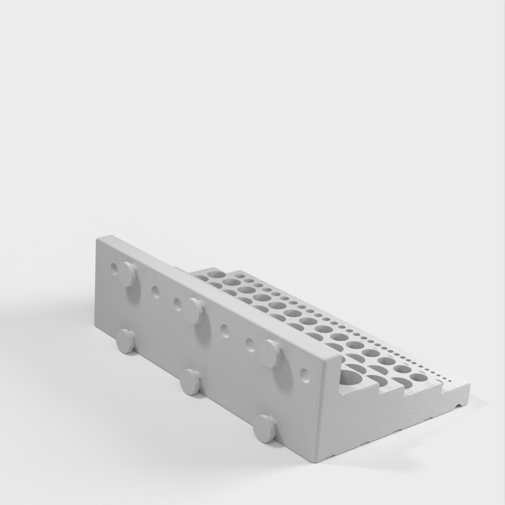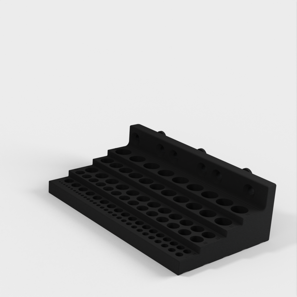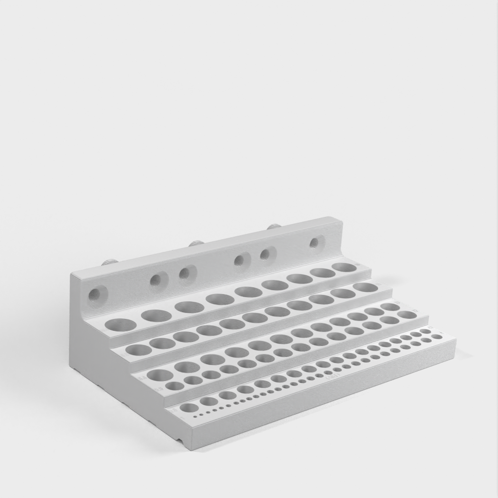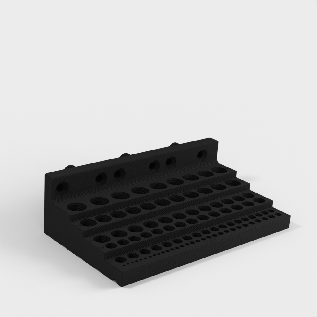 Dies ist ein Bohrerhalter, der Ihre Bohrer in Größen von 1 mm bis 10,4 mm in Abständen von 0,1 mm sichert und organisiert. Es ist so konzipiert, dass es mit dem Parkside Wall Tool Storage Board kompatibel ist. Das bedeutet, dass Sie es einfach am Board befestigen können, um Bohrer organisiert zu halten und Ihren Arbeitsbereich aufgeräumt und effizient zu halten. Mit dieser Kombination stellen Sie eine vollständige und praktische Lösung für Ihre Bohr- und Werkzeugaufbewahrungsbedürfnisse sicher.