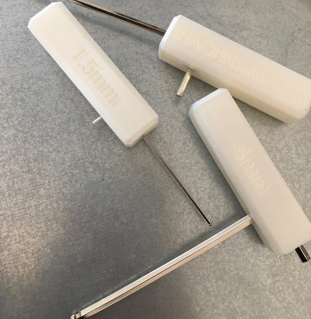 Hierbei handelt es sich um einen Griffsatz, der für metrische Innensechskantschlüssel (Inbusschlüssel) in den Größen 1,5 mm, 2 mm, 2,5 mm, 3 mm und 4 mm geeignet ist (die gleichen Größen, die Sie bei vielen 3D-Druckern erhalten). Sie sind sehr einfach und leicht zu bedienen und können entweder im T-Griff oder als Schraubendreher verwendet werden. Sie müssen Ihre Inbusschlüssel nicht kürzen und können den Schlüssel für den normalen Gebrauch einfach entfernen.