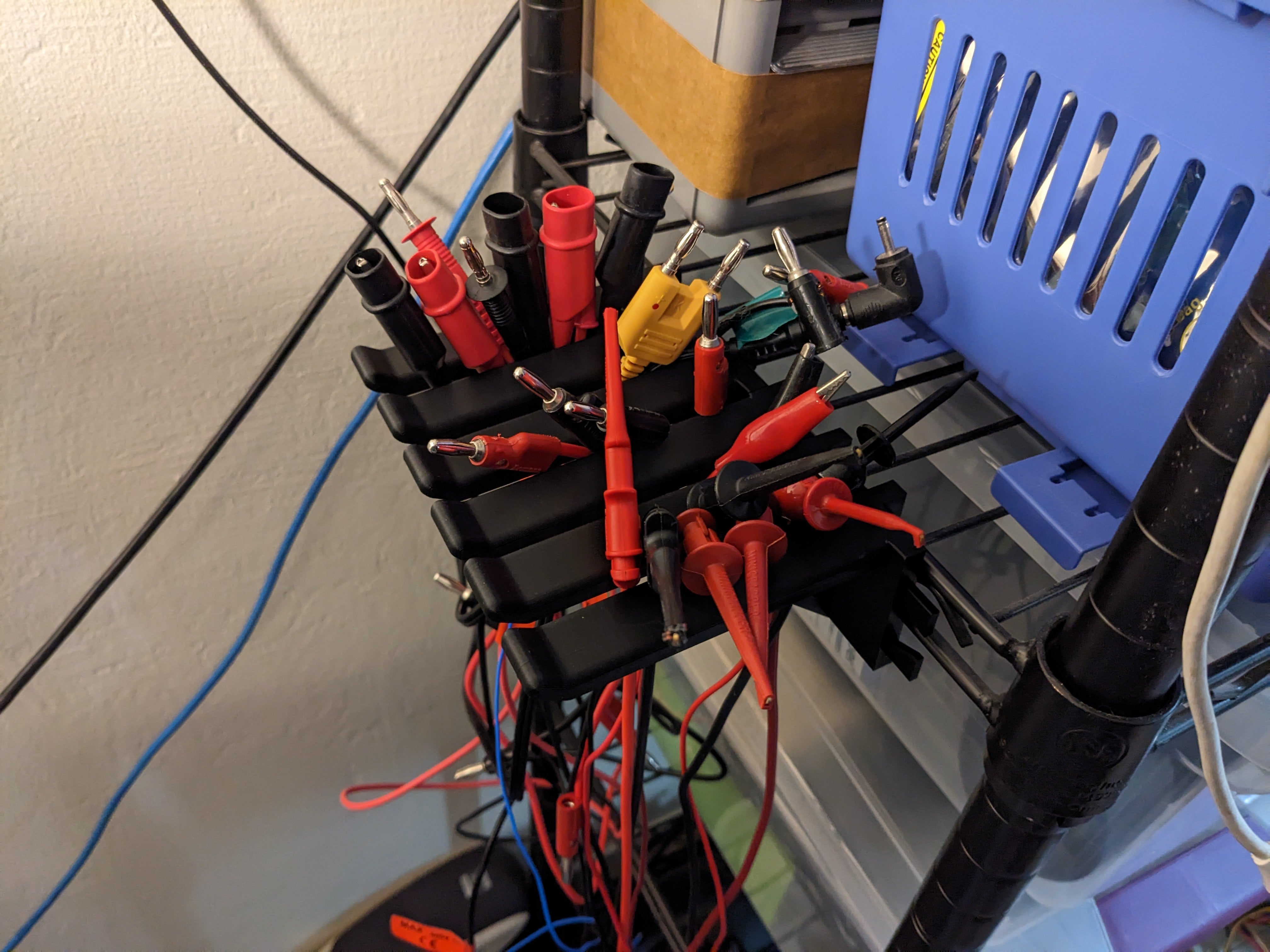 Dieser Kabelhalter bietet Ihnen eine flexible und übersichtliche Aufbewahrungslösung für Ihre Messleitungen, Kabel und anderes Zubehör. Er lässt sich einfach an der Kante von HDX-Drahtregalen – oder ähnlichen Regalen mit 7/16-Zoll-Rohren – montieren und kann entweder vor oder an der Seite des Regals platziert werden.