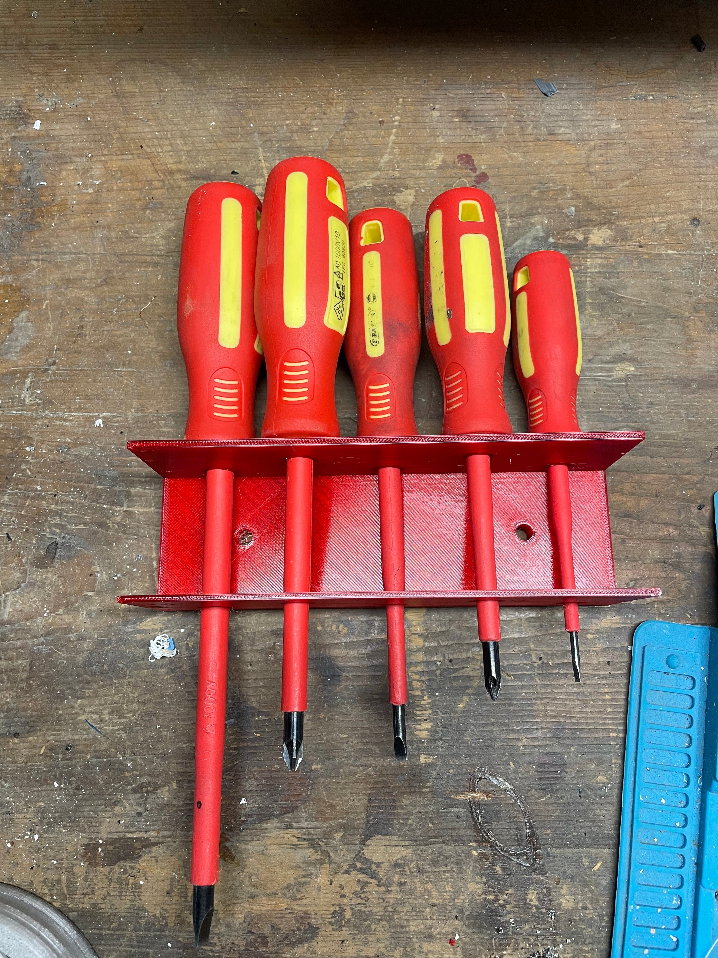 Für größere Schraubendreher wird eine Schraubendreher-Wandhalterung empfohlen. Es lässt sich einfach mit Schrauben an der Wand montieren und sorgt so für mehr Ordnung und Ordnung in Ihrer Werkstatt oder Ihrem Arbeitsbereich. Der Werkzeughalter ist robust und langlebig und eignet sich perfekt zum Aufbewahren und Organisieren Ihrer Werkzeuge.