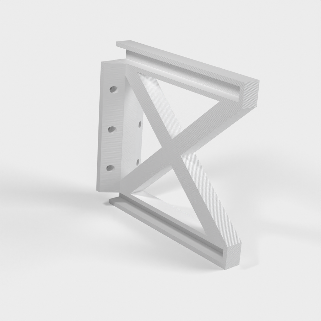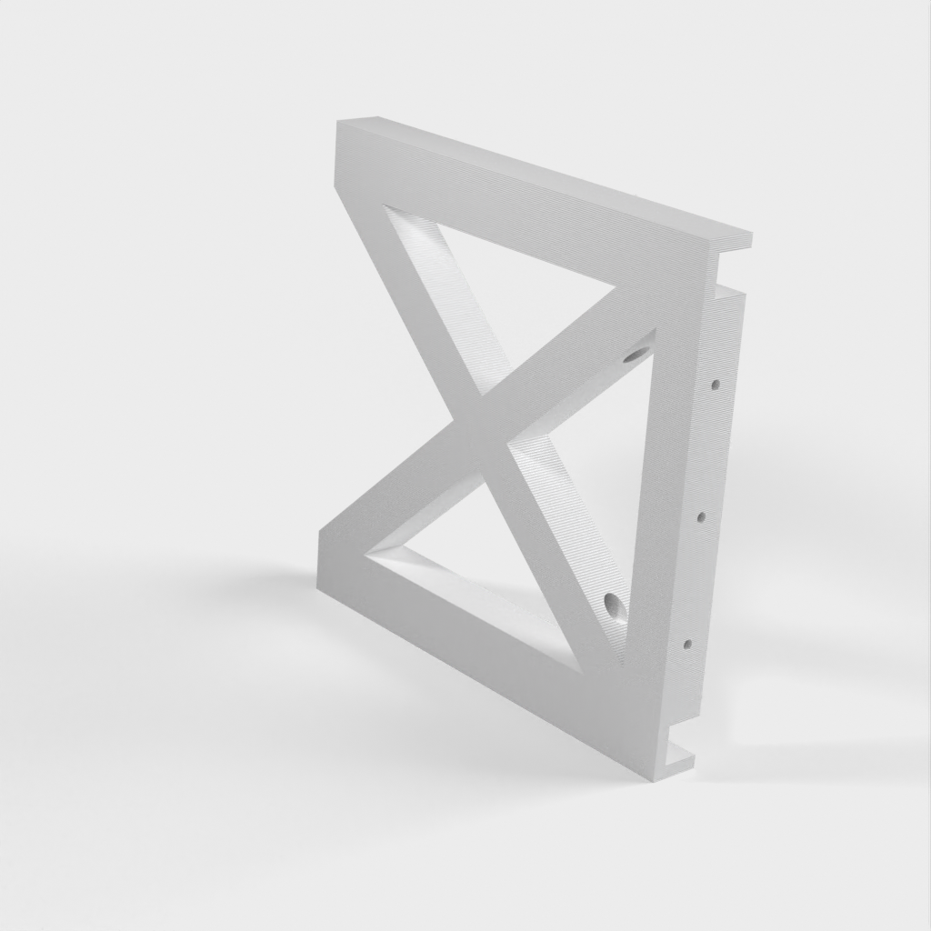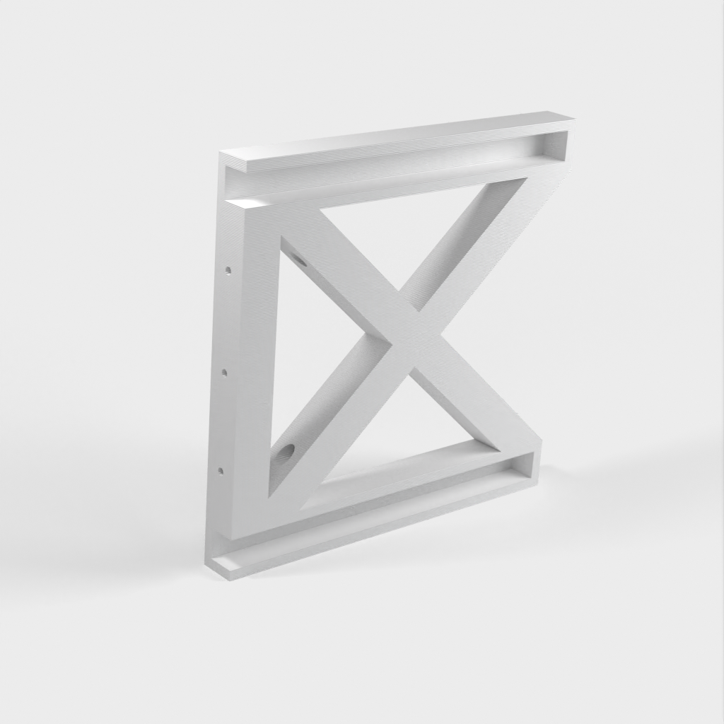 Diese Regalhalterung ist so konzipiert, dass sie zu Ikea-Burhult-Regalen passt, passt aber auch zu jedem Regal mit den gleichen Abmessungen. In die Schraubenlöcher der Halterung passen Schrauben mit einer Kopfbreite von 8,5 mm und einer Gewindebreite von 4 mm. Um sicherzustellen, dass das Regal nicht von der Wand fällt, müssen Sie Dübel verwenden. Für die Herstellung von 4 dieser Klammern benötigen Sie etwa 1 kg Filament. Die Abmessungen der Halterung betragen 200,5 mm x 196,85 mm x 20,25 mm.