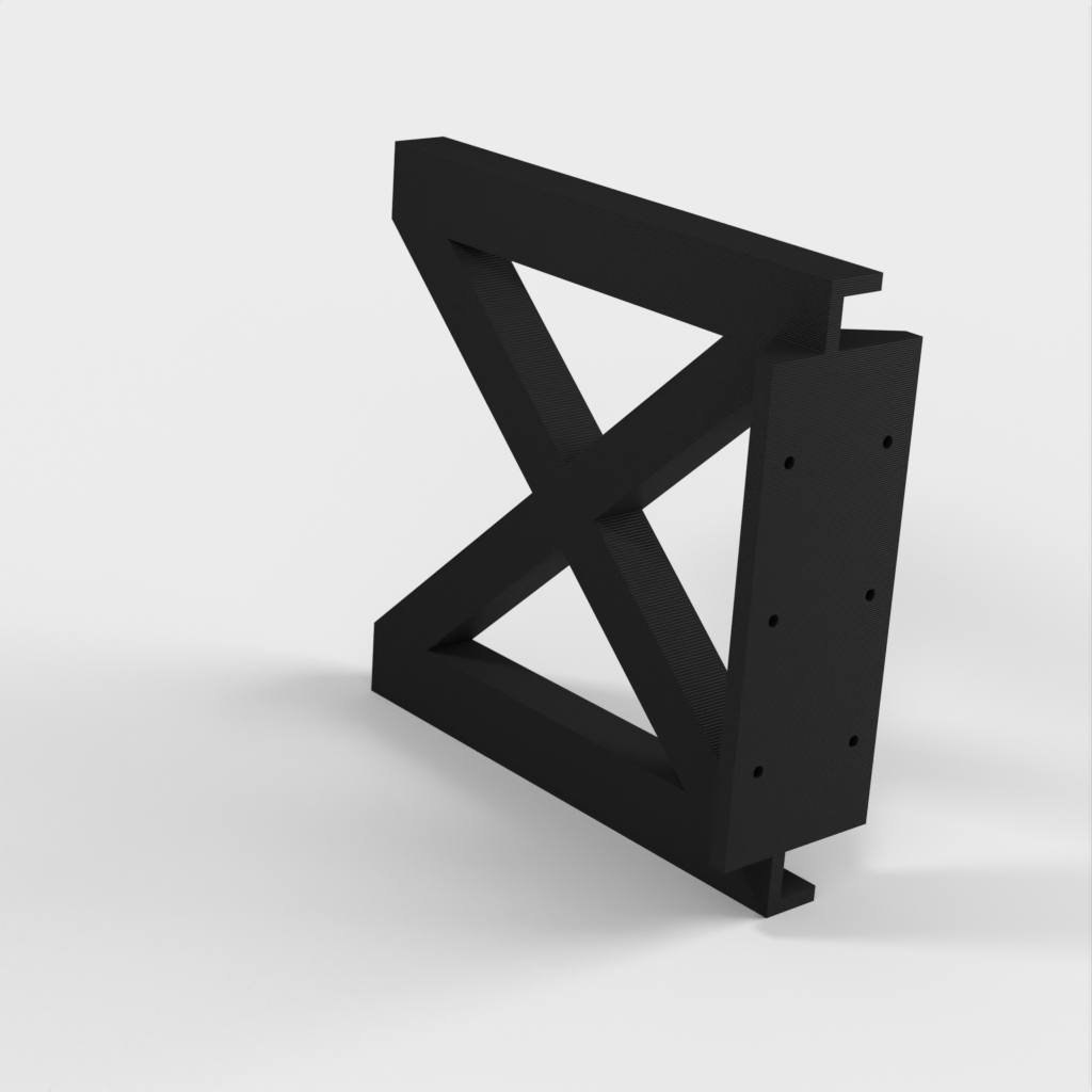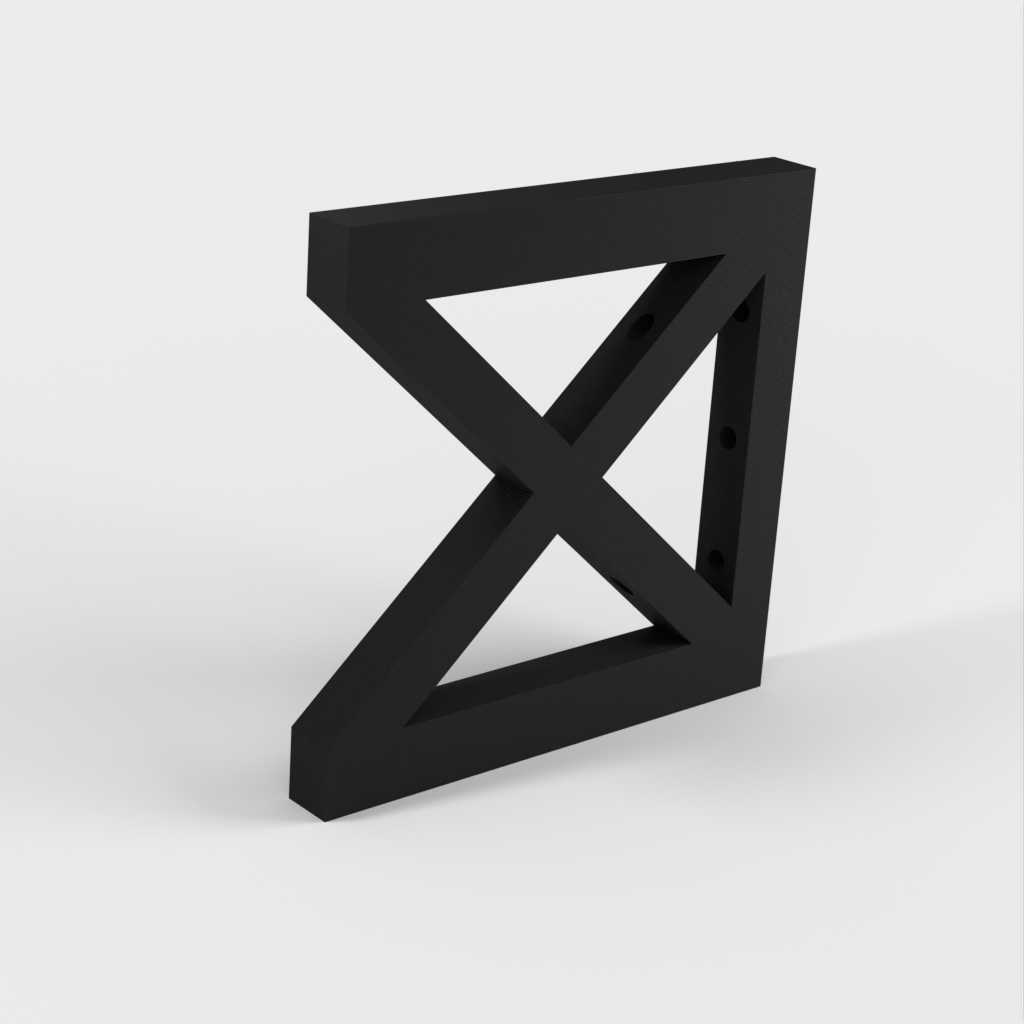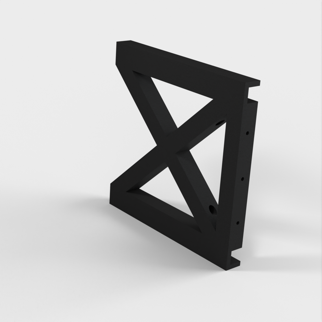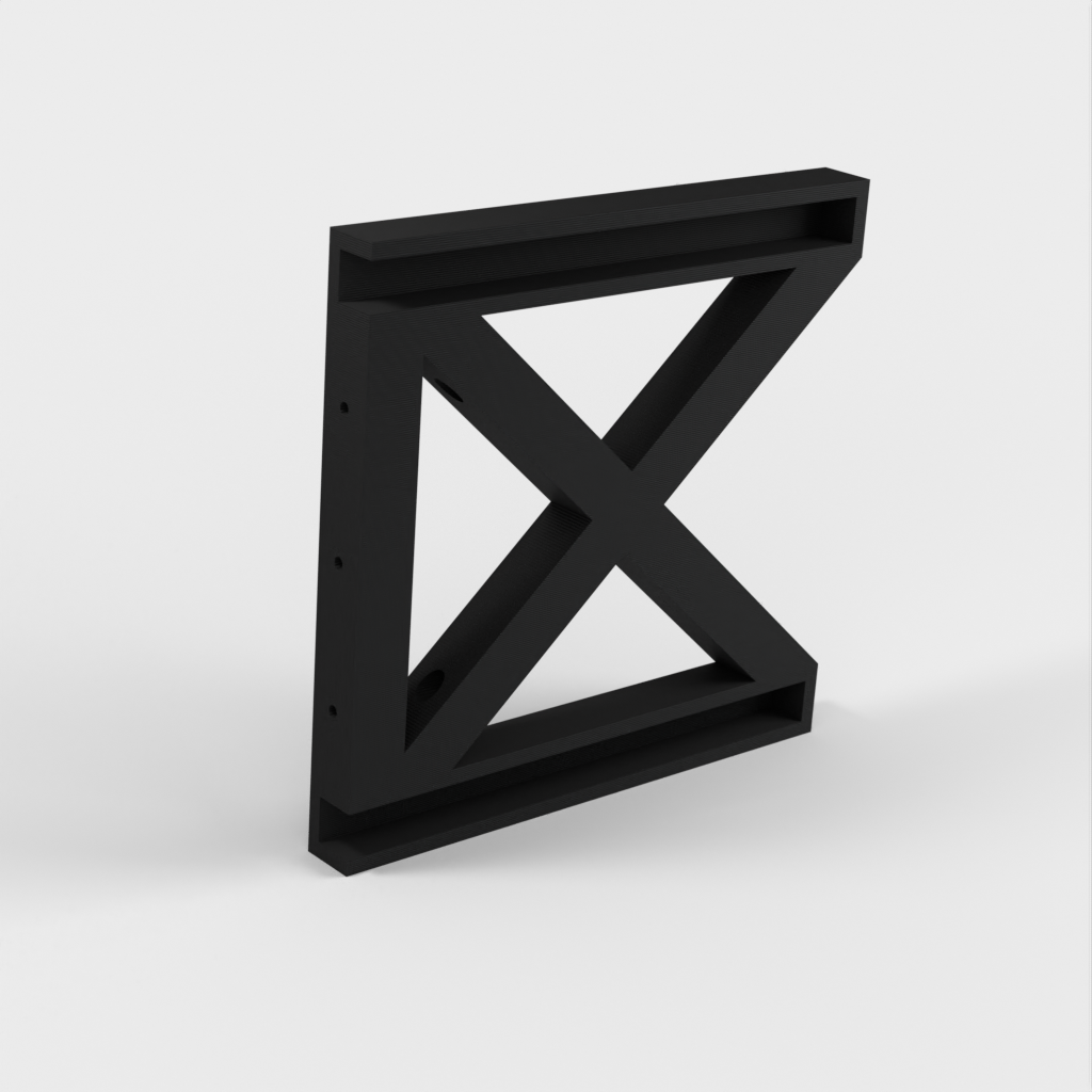 Diese Regalhalterung ist so konzipiert, dass sie zu Ikea-Burhult-Regalen passt, passt aber auch zu jedem Regal mit den gleichen Abmessungen. In die Schraubenlöcher der Halterung passen Schrauben mit einer Kopfbreite von 8,5 mm und einer Gewindebreite von 4 mm. Um sicherzustellen, dass das Regal nicht von der Wand fällt, müssen Sie Dübel verwenden. Für die Herstellung von 4 dieser Klammern benötigen Sie etwa 1 kg Filament. Die Abmessungen der Halterung betragen 200,5 mm x 196,85 mm x 20,25 mm.