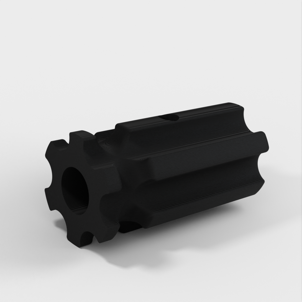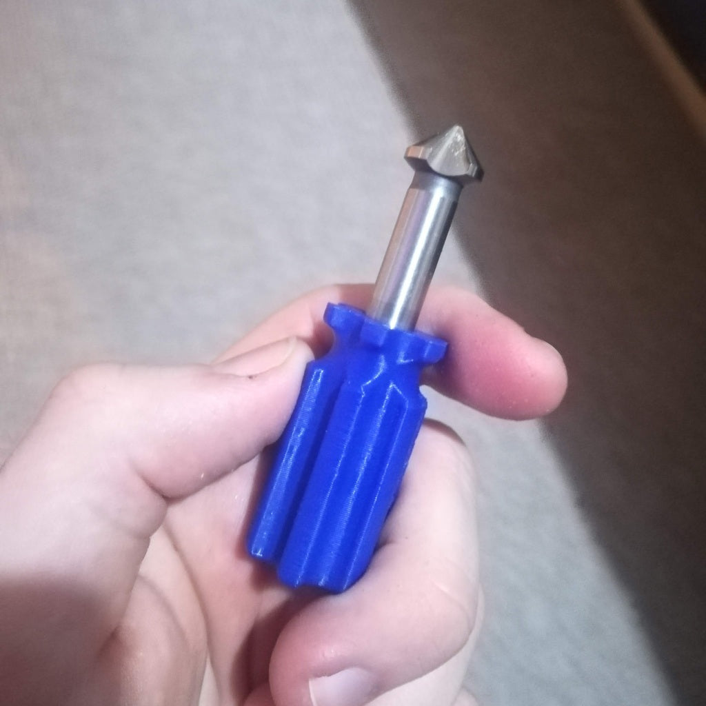 Werkzeughalter zur bequemen Handhabung Ihrer Schleifwerkzeuge. Es kann sowohl auf Holz als auch auf Kunststoff verwendet werden, ohne dass ein Bohrer erforderlich ist. Der Griff ist für eine einfache Handhabung einem billigen Kinderschraubendreher nachempfunden. Die Löcher haben einen Durchmesser von 8,2 mm und bieten Platz für eine M4-Stellschraube, um das Werkzeug zu fixieren. Es gibt auch eine Version ohne Loch für die Einstellschraube.