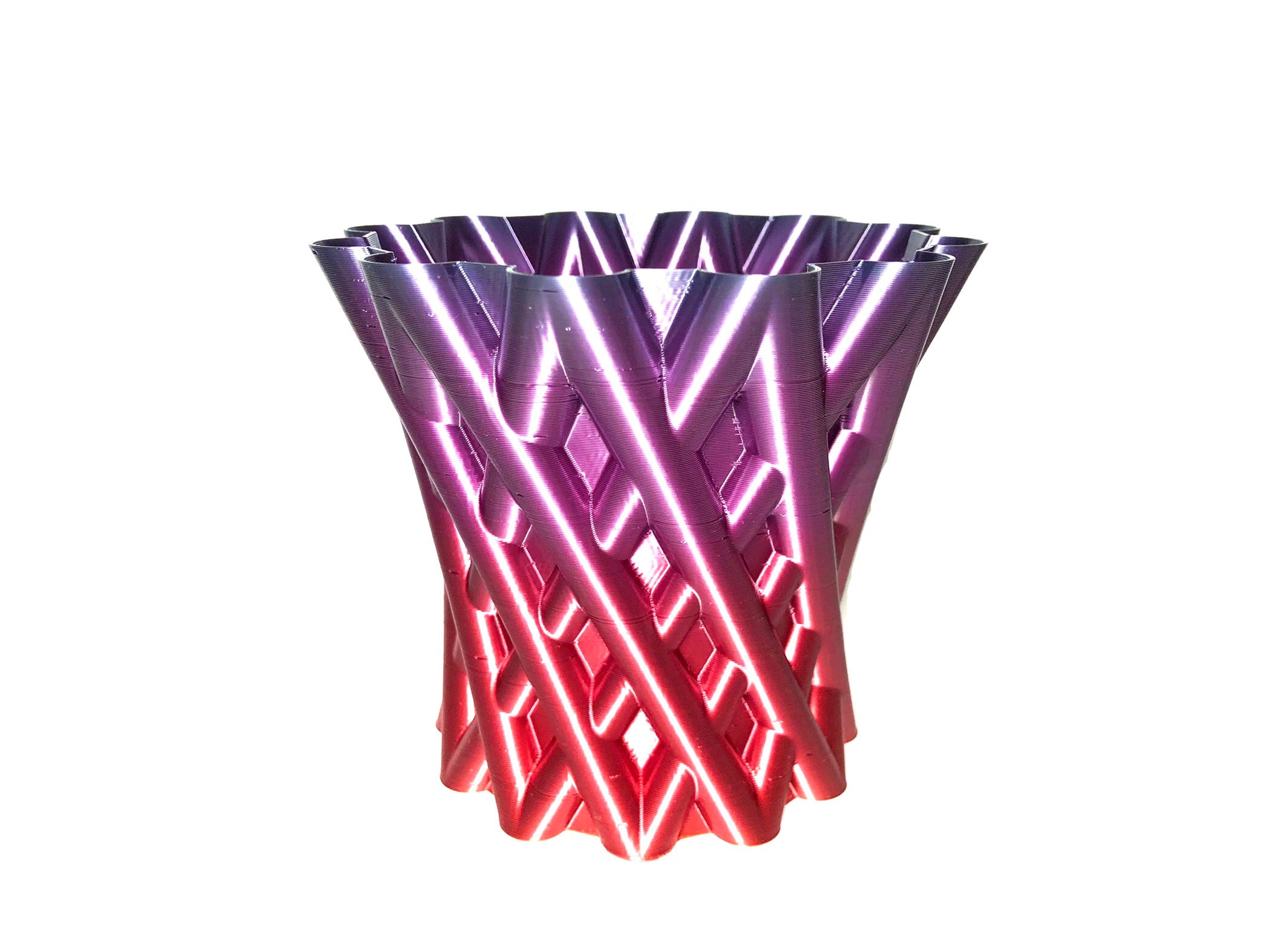 Die Diamond Lattice Vase ist eine stilvolle und moderne Vase, die jedem Raum Eleganz verleiht. Diese Vase hat ein einzigartiges Rautengittermuster, das einen auffälligen Effekt erzeugt, wenn sie mit Blumen gefüllt oder als Dekorationsobjekt verwendet wird. Mit seinem leichten und offenen Design bringt er die Blumen zum Leuchten und kann auch für kunstvolle Arrangements verwendet werden.