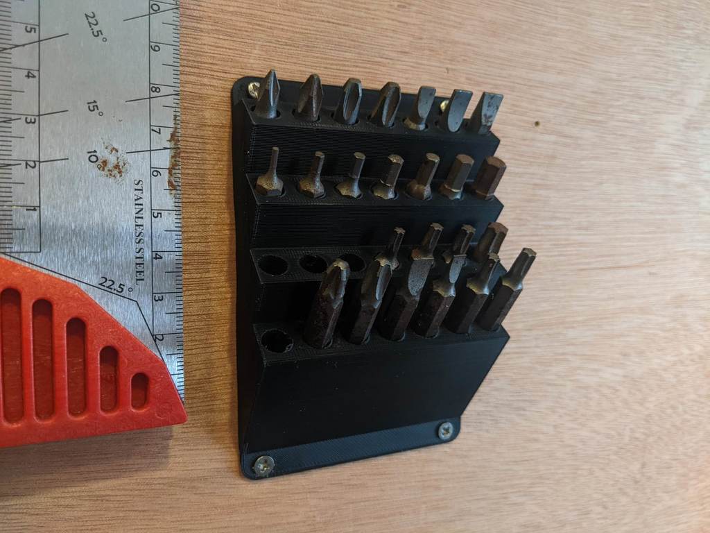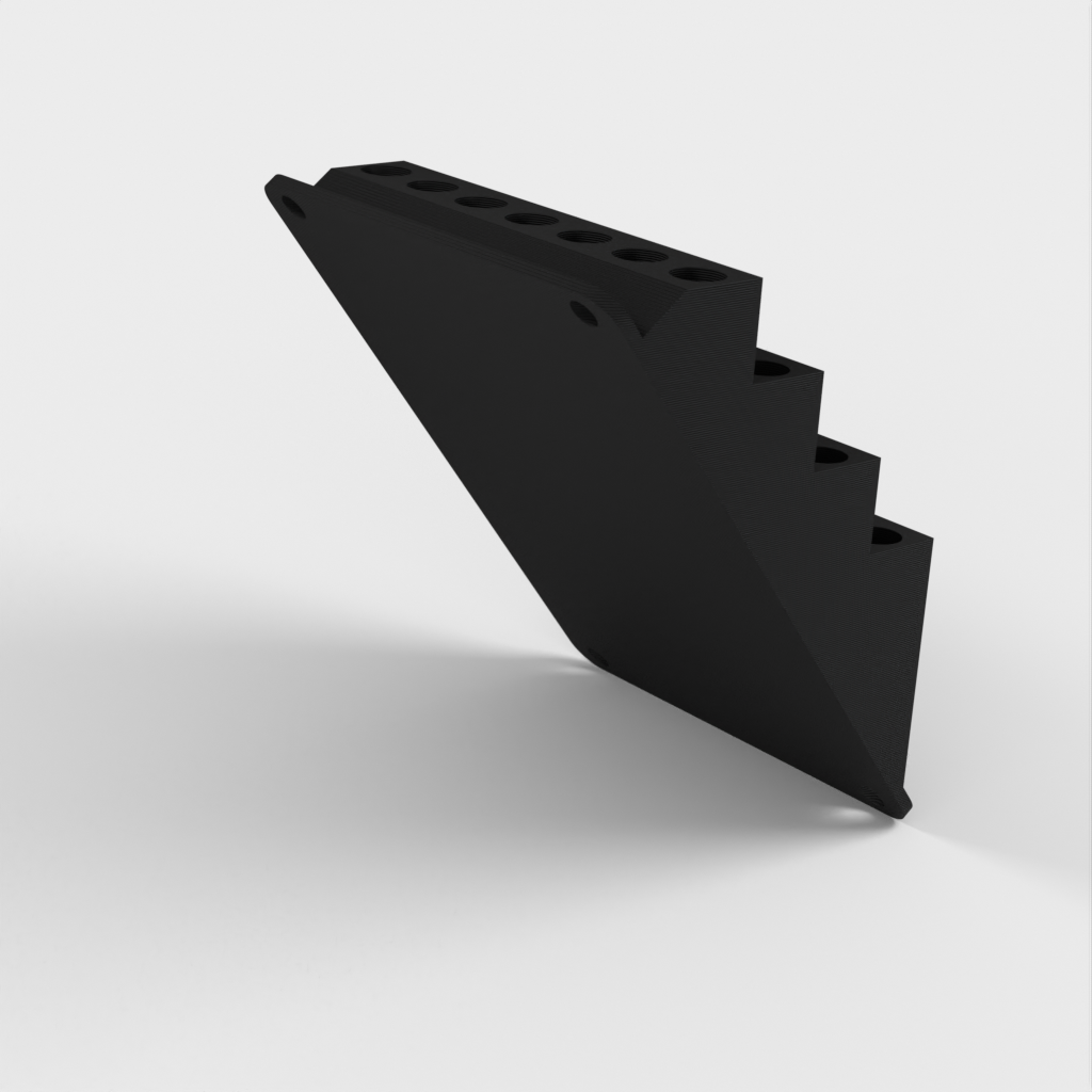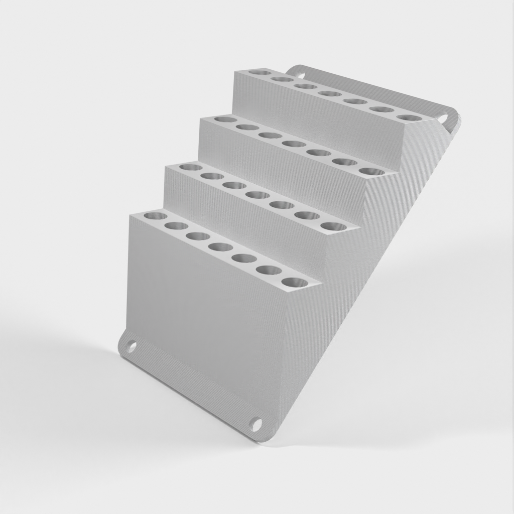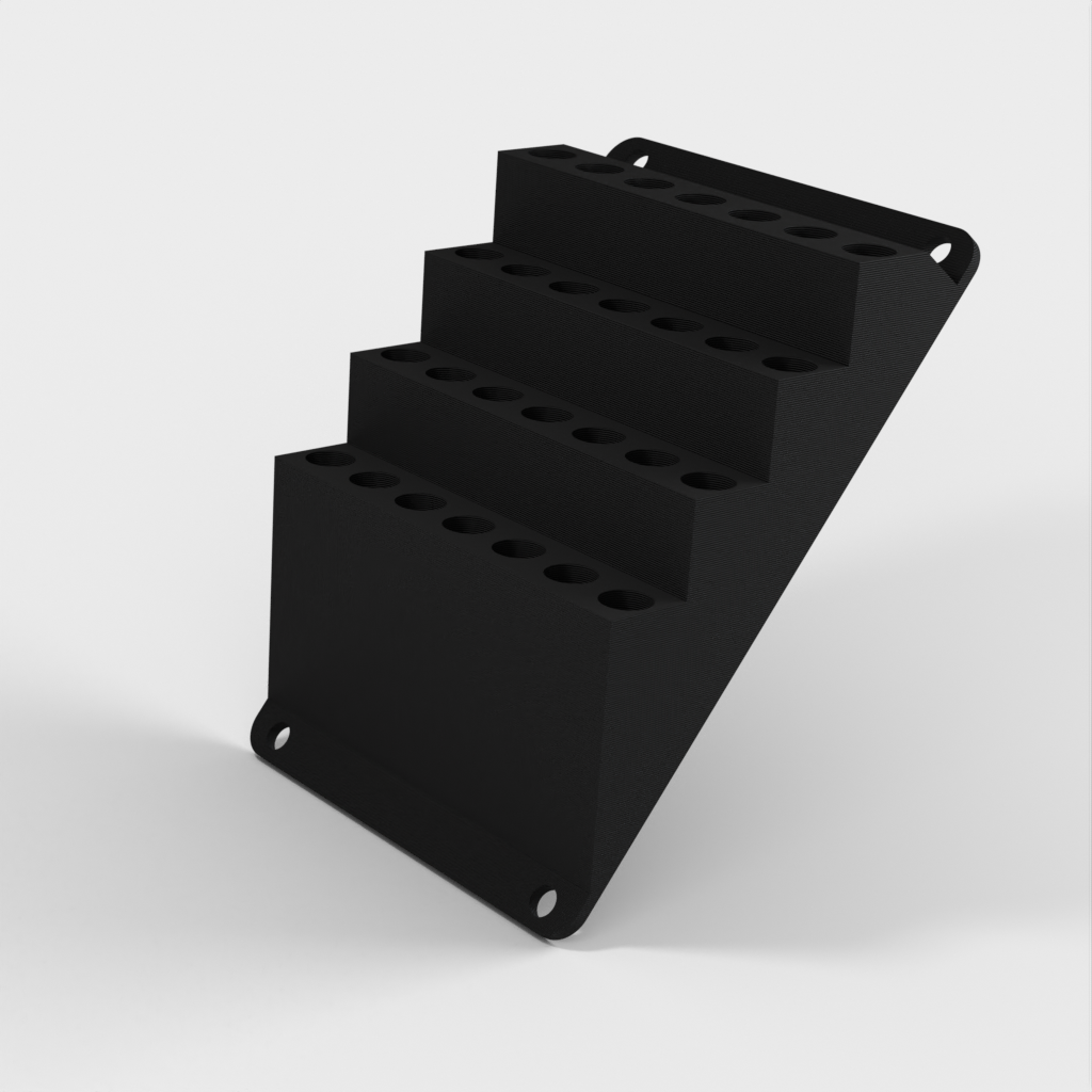 6,35 mm (1/4") Schraubendreher-Bithalter zur Montage an der Wand. Das Produkt enthält eine untere Reihe für längere Bits, während der Rest für normale kurze Bits verwendet wird. Dies erleichtert die Aufrechterhaltung der Ordnung in Ihrer Werkstatt, Ihrem Schuppen oder Arbeitsfahrzeug.