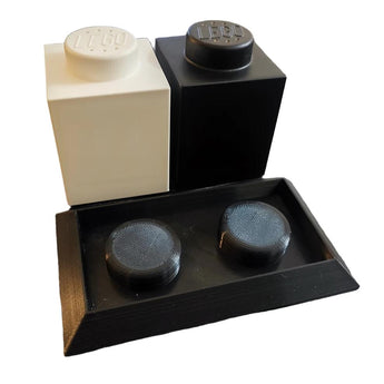 Halter für Lego Salz- und Pfeffermühle. Der Halter ist praktisch und stilvoll und schafft Ordnung auf dem Tisch. Es ist so konzipiert, dass es Standard-Lego-Salz- und Pfeffermühlen aufnehmen kann, wodurch Ihr kulinarisches Erlebnis noch verspielter und farbenfroher wird.