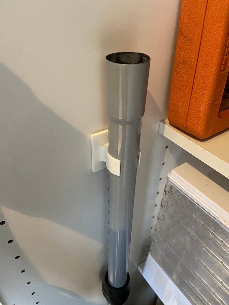 Halter für 32 mm Rohre, Besen etc. Gemacht für Staubsaugerzubehör zur Organisation des Putzschranks. Entworfen mit einer Grundfläche von 50 x 50 mm für die Befestigung mit doppelseitigem Klebeband (nicht im Lieferumfang enthalten).