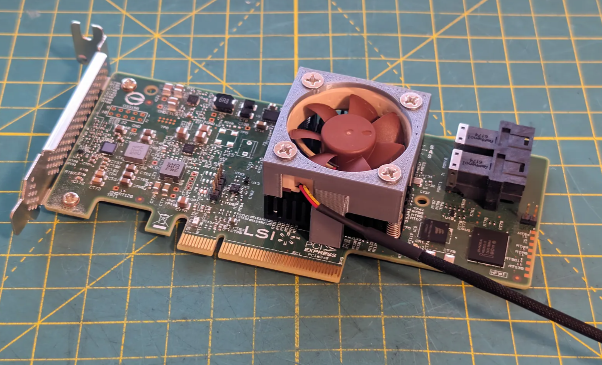 Das Design ist von ähnlichen Gehäusen inspiriert und ist basierend auf der gemeinsamen Kühlkörpergröße mit anderen Varianten von LSI-Boards kompatibel, wie etwa LSI 9300-4i und 9300-8e. Die Kühlkörper sind etwa 43,3 mm im Quadrat und 11 mm dick, sodass die Abdeckung eine optimale Passform gewährleistet. Für Situationen, in denen ein NF-A4x20-Lüfter verwendet wird, ist eine alternative Abdeckungsoption verfügbar, die jedoch nicht getestet wurde.