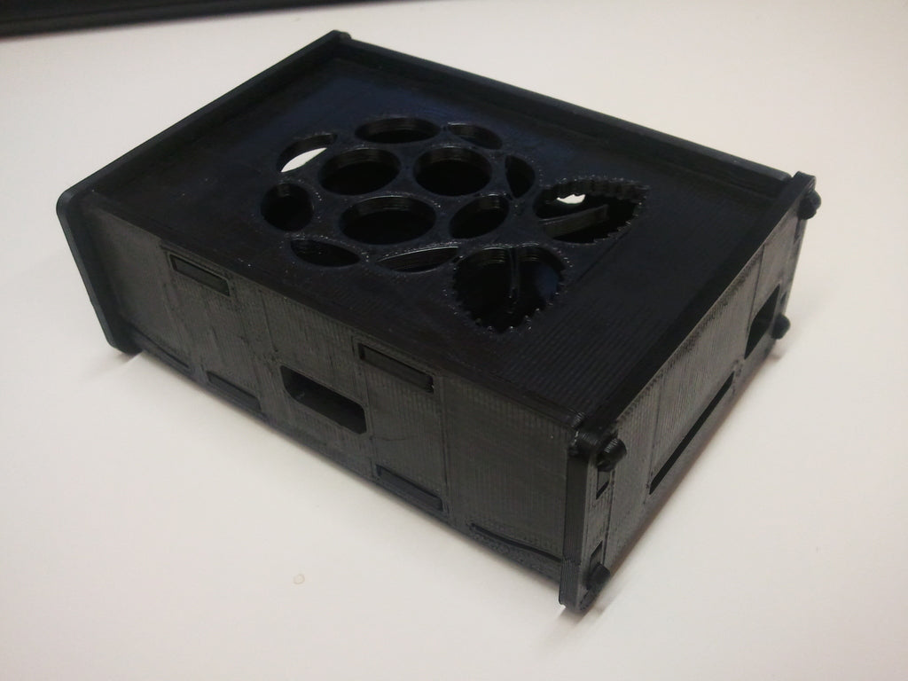 Dies ist eine Zusammenstellung mehrerer Raspberry Pi-Gehäusemodelle, die alle auf dem Adafruit-Gehäuse basieren. Die Dicke und die Laschen sind so angepasst, dass vor dem Anbringen nur minimaler Anpassungsbedarf besteht.