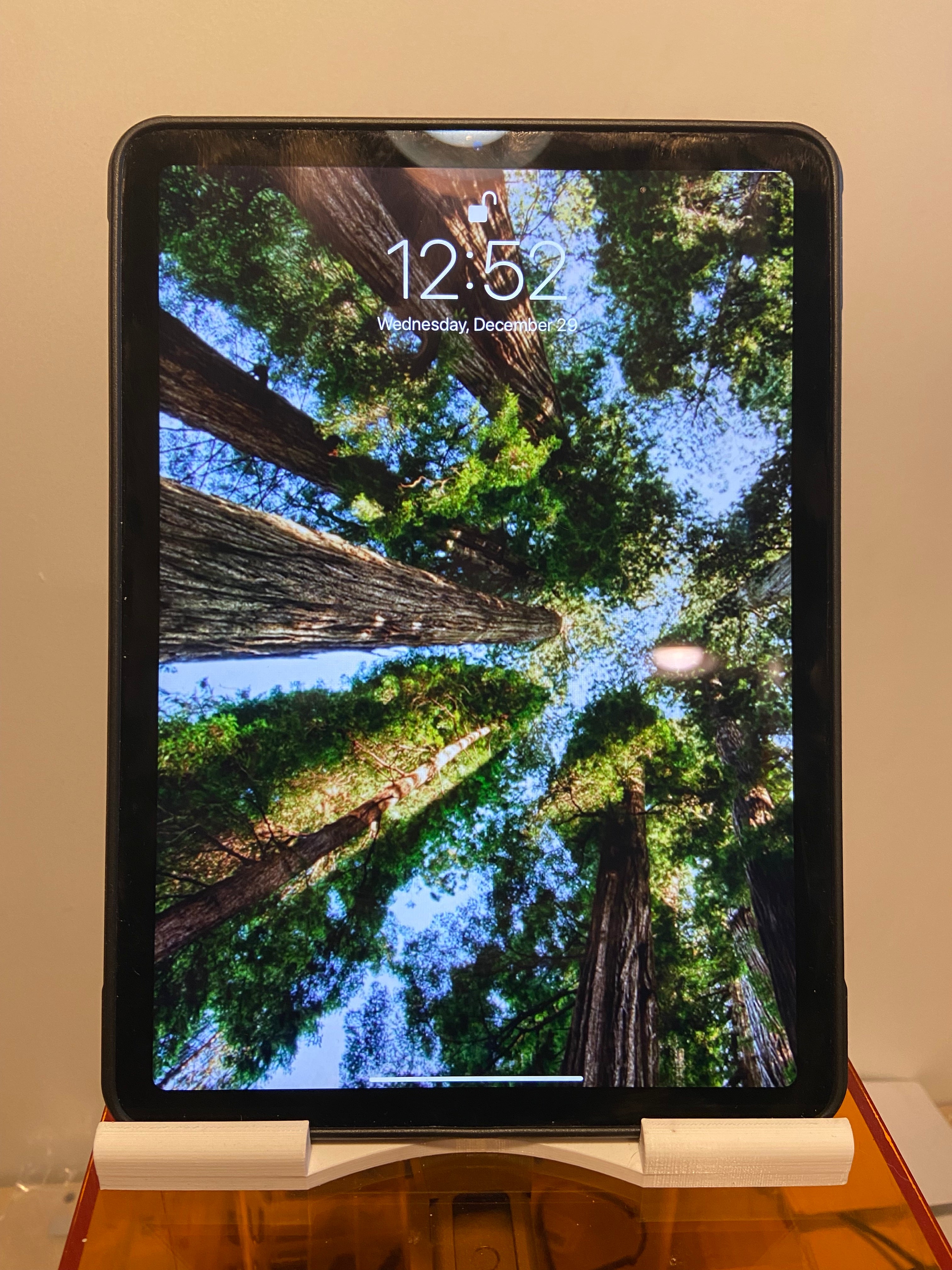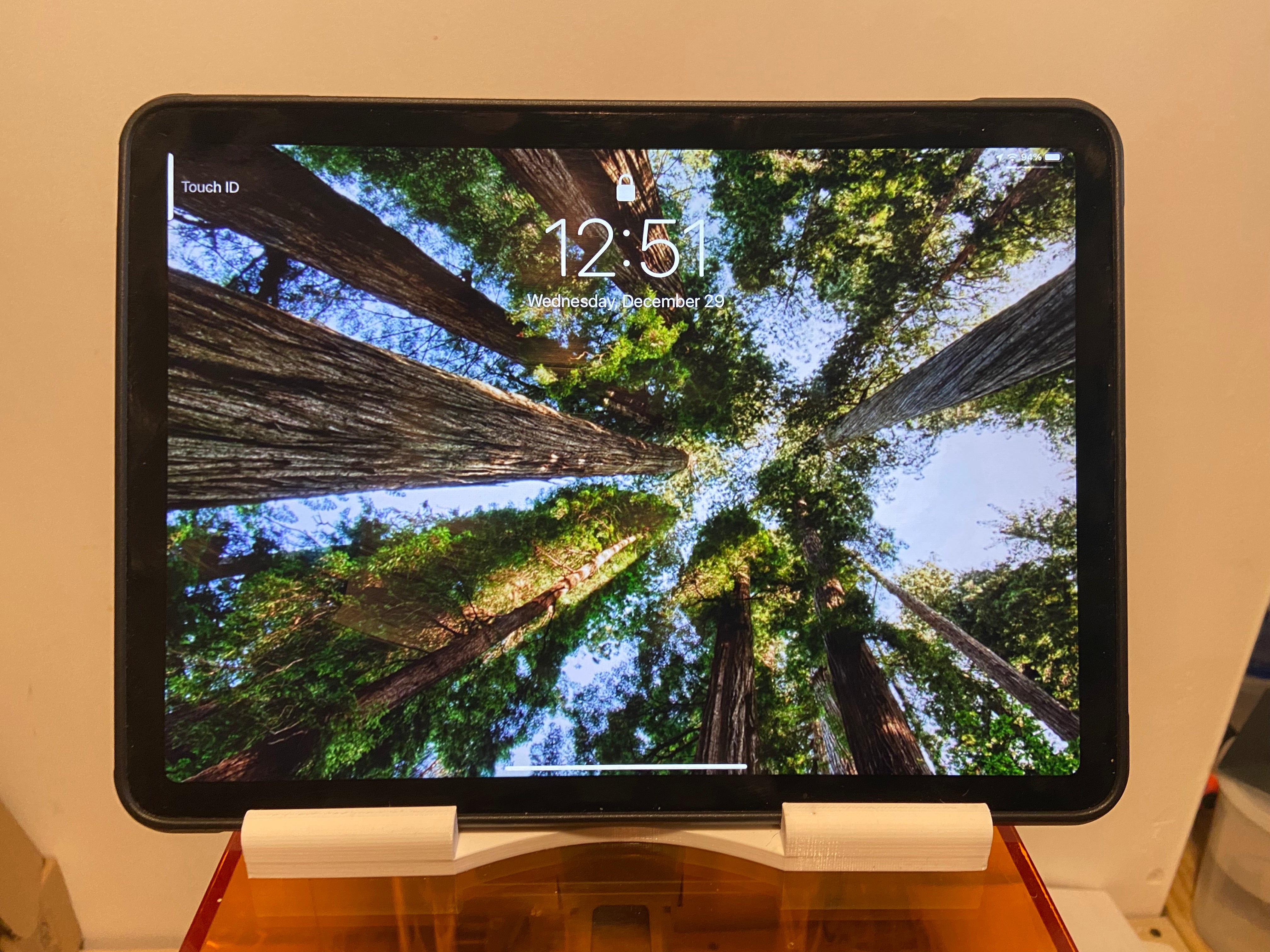 Robuster iPad-Ständer, der Ihr iPad während der Verwendung an Ort und Stelle hält. Dank des großen Kanals kann der Ständer auch mit einer Schutzhülle auf Ihrem iPad verwendet werden. Dies fällt nicht ab, wenn Sie während der Auswahl oder beim Wischen auf den Bildschirm drücken. Dieses Produkt ist so konstruiert, dass es wiederholtem Gebrauch standhält. Die Bilder zeigen den Ständer auf einem Harzdrucker, gedruckt wurde er jedoch auf einem Prusa MK3S.